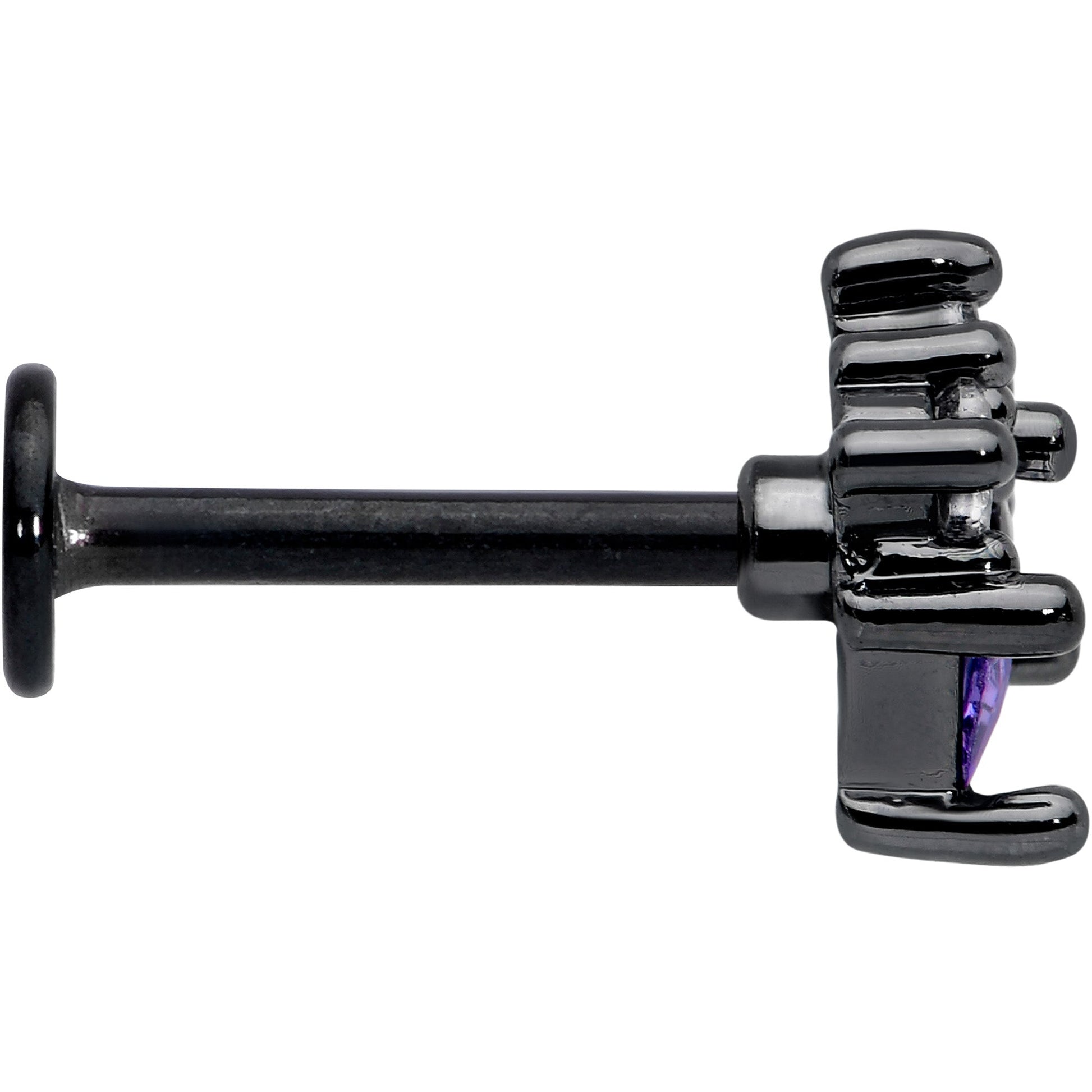 16G 5/16 Purple CZ Gem Black Rhombus Riot Labret Monroe Tragus