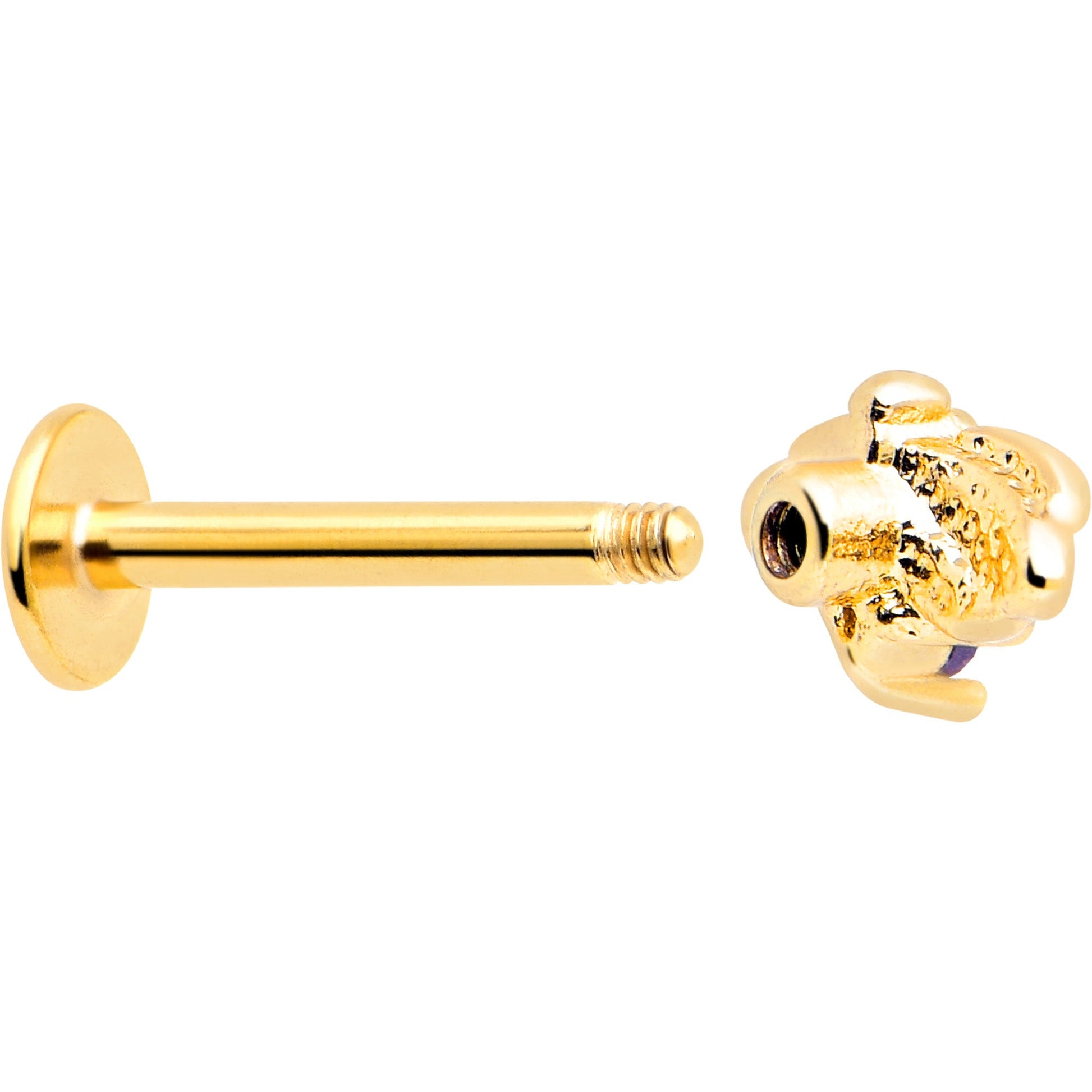 16G 5/16 Purple Gem Gold Tone Beauty Bug Labret Monroe Tragus