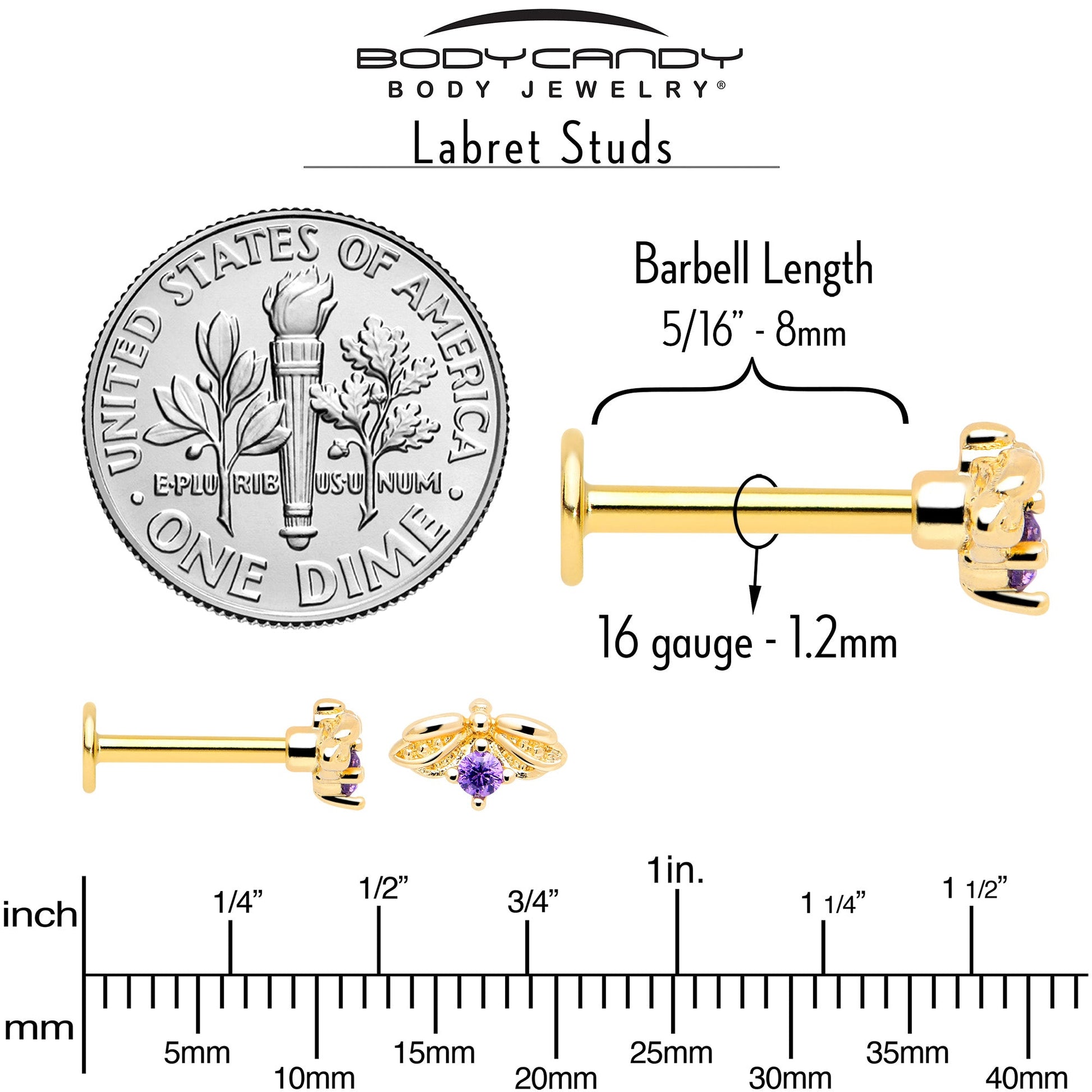 16 Gauge 5/16 Purple Gem Gold Tone Beauty Bug Labret Monroe Tragus