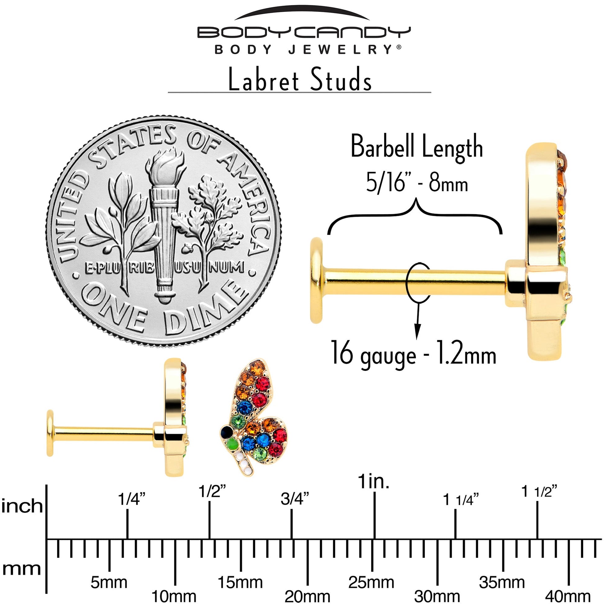 16 Gauge 5/16 Red Blue Gem Gold Tone Butterfly Labret Monroe Tragus