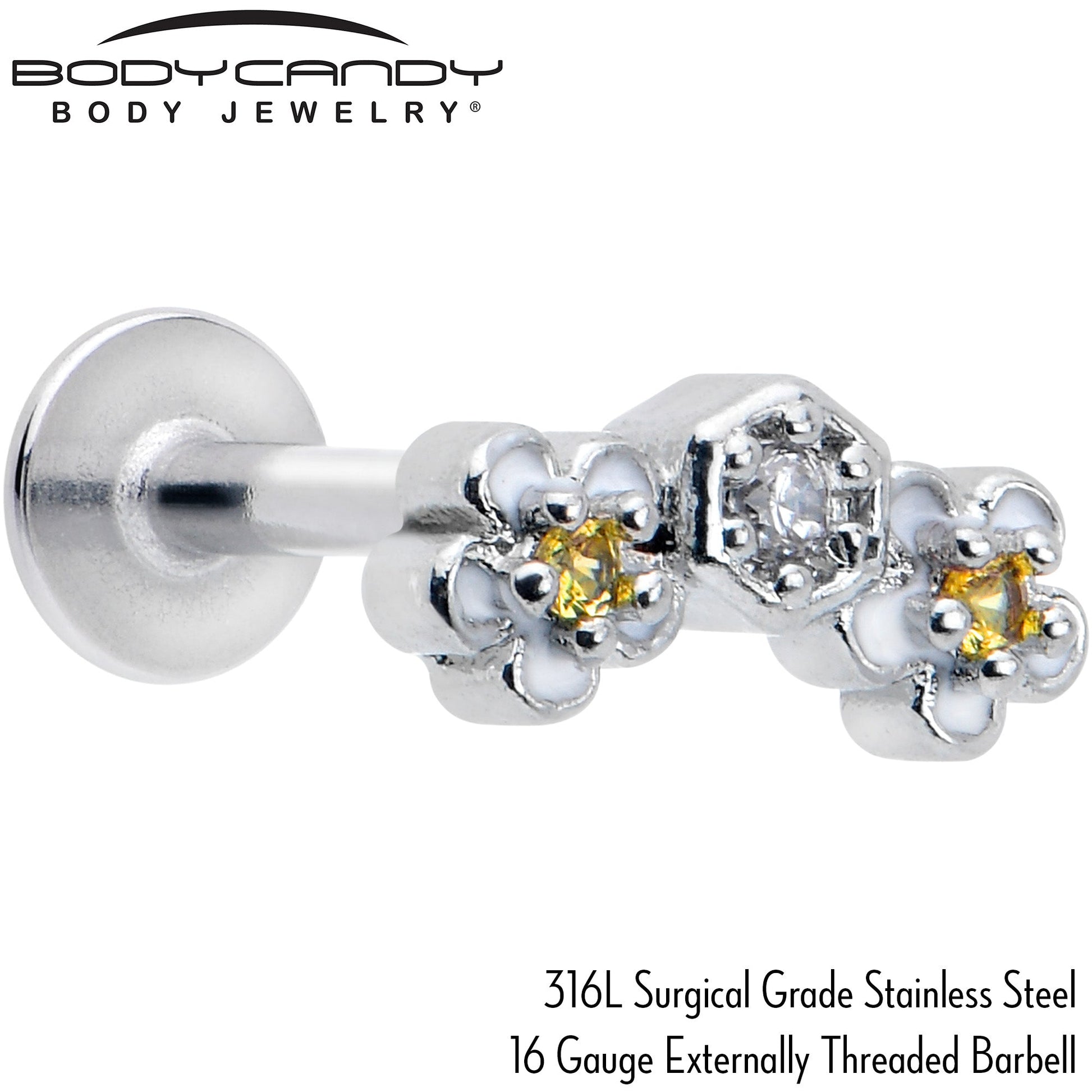 16G 5/16 Yellow CZ Gem Honeycomb Flower Labret Monroe Tragus