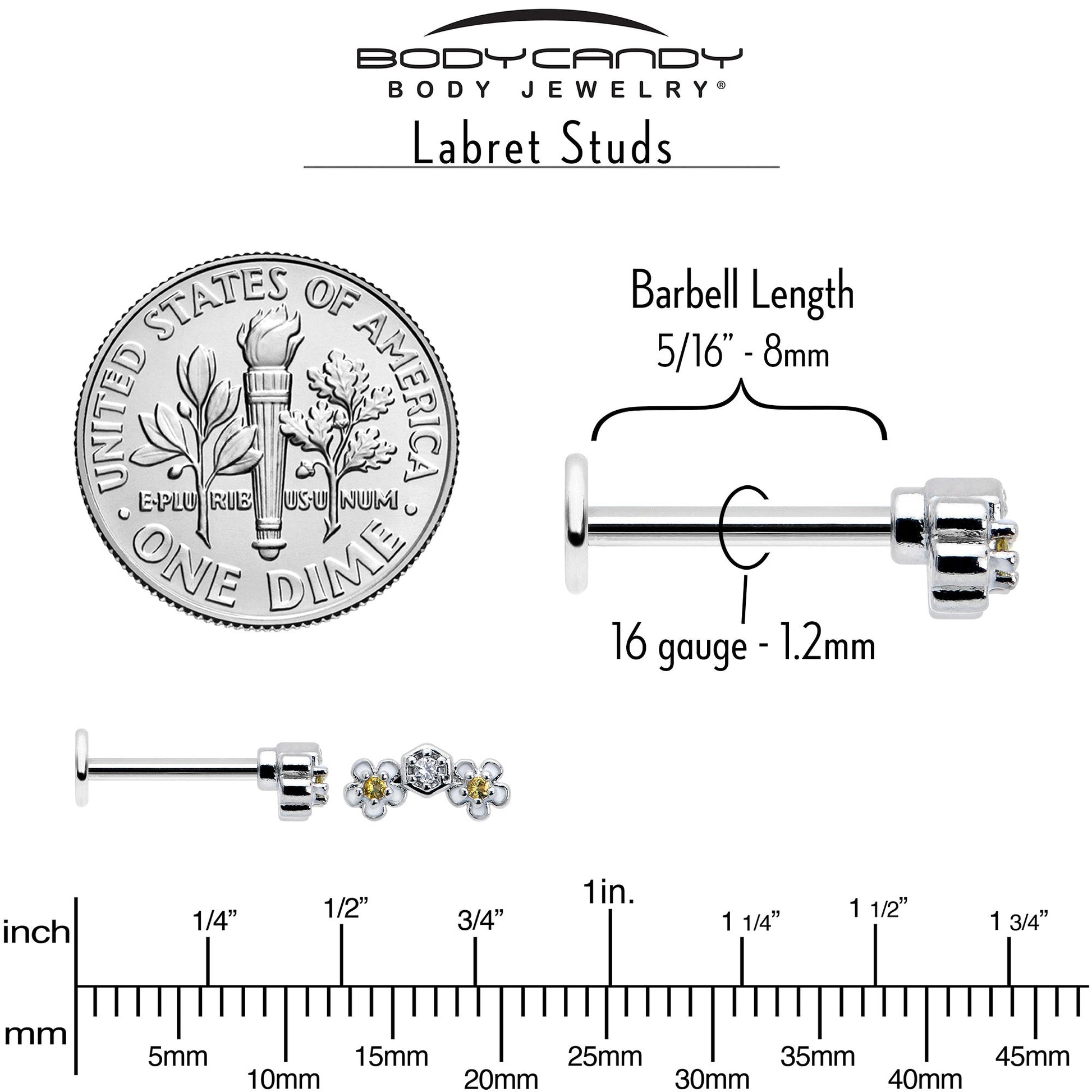 16 Gauge 5/16 Yellow CZ Gem Honeycomb Flower Labret Monroe Tragus