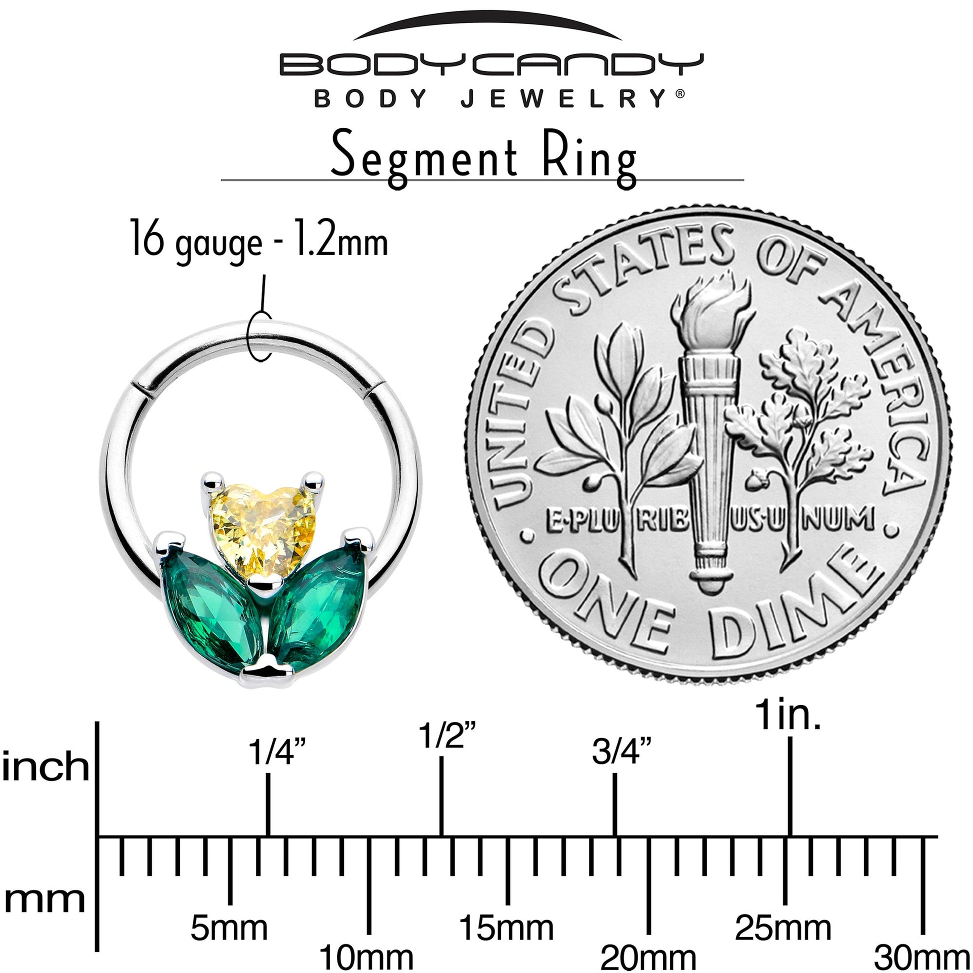 16G 5/16 Yellow Green CZ Gem Love Flower Hinged Segment Ring