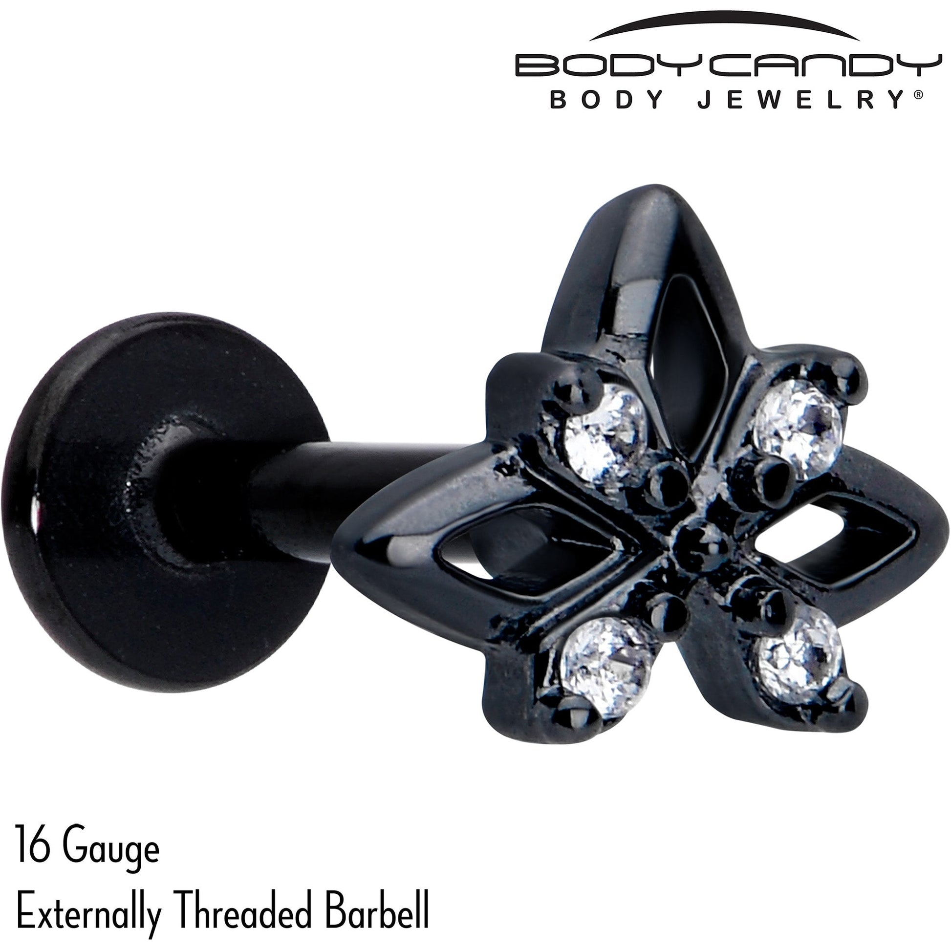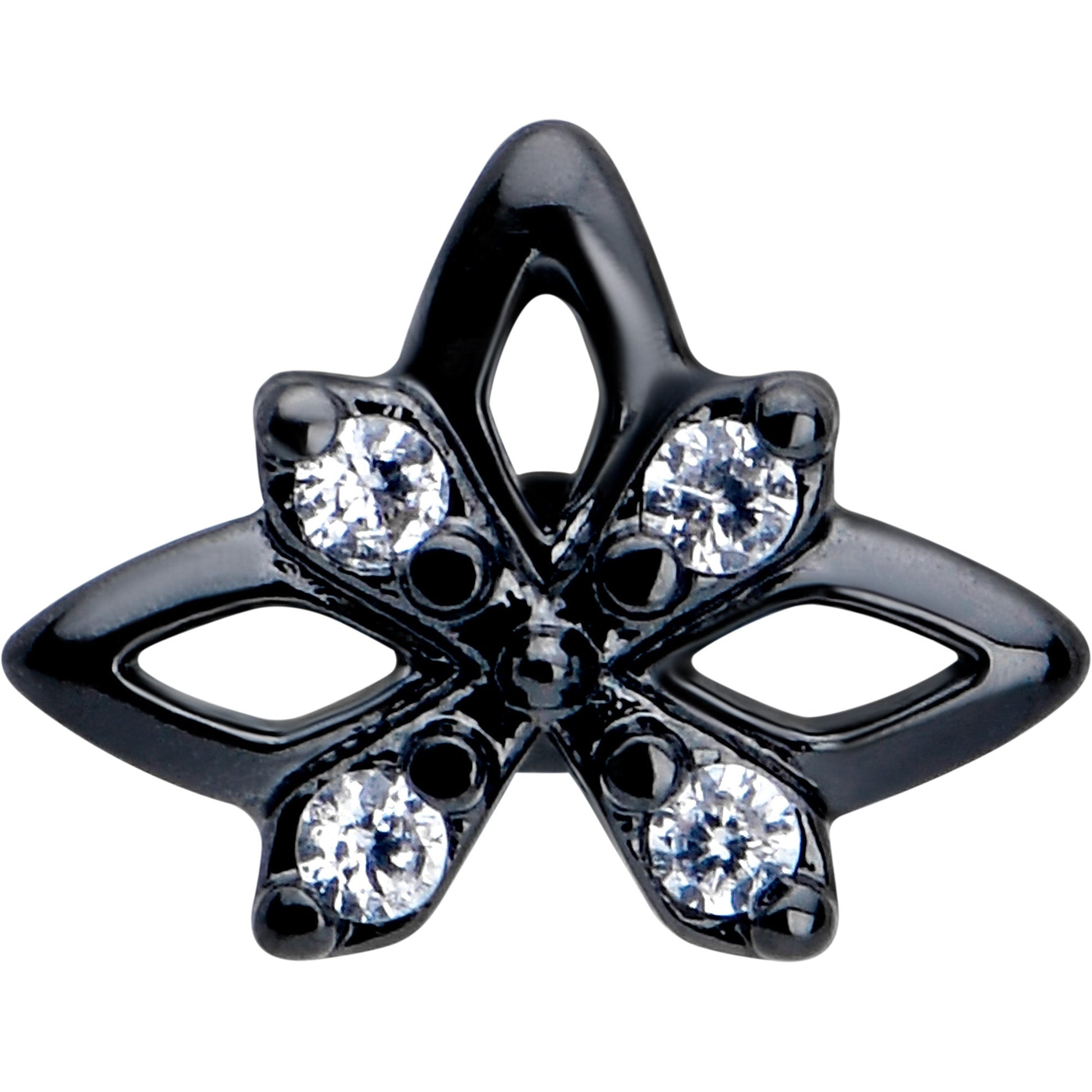 Check out this super comfortable 16 gauge flat back earring for 24/7 wear.. No need to take this earring out; keep it in for sleeping and naps. It's made with a 6mm black PVD over 316L surgical grade stainless steel straight post with a flat disc end. The front end features a star charm with an X over it, set with clear cubic zirconia gems at the cardinal points. It is further embellished with textured detailing for added style. Let your inner goth come out to play with this darkly divine ear piercing jewelry.