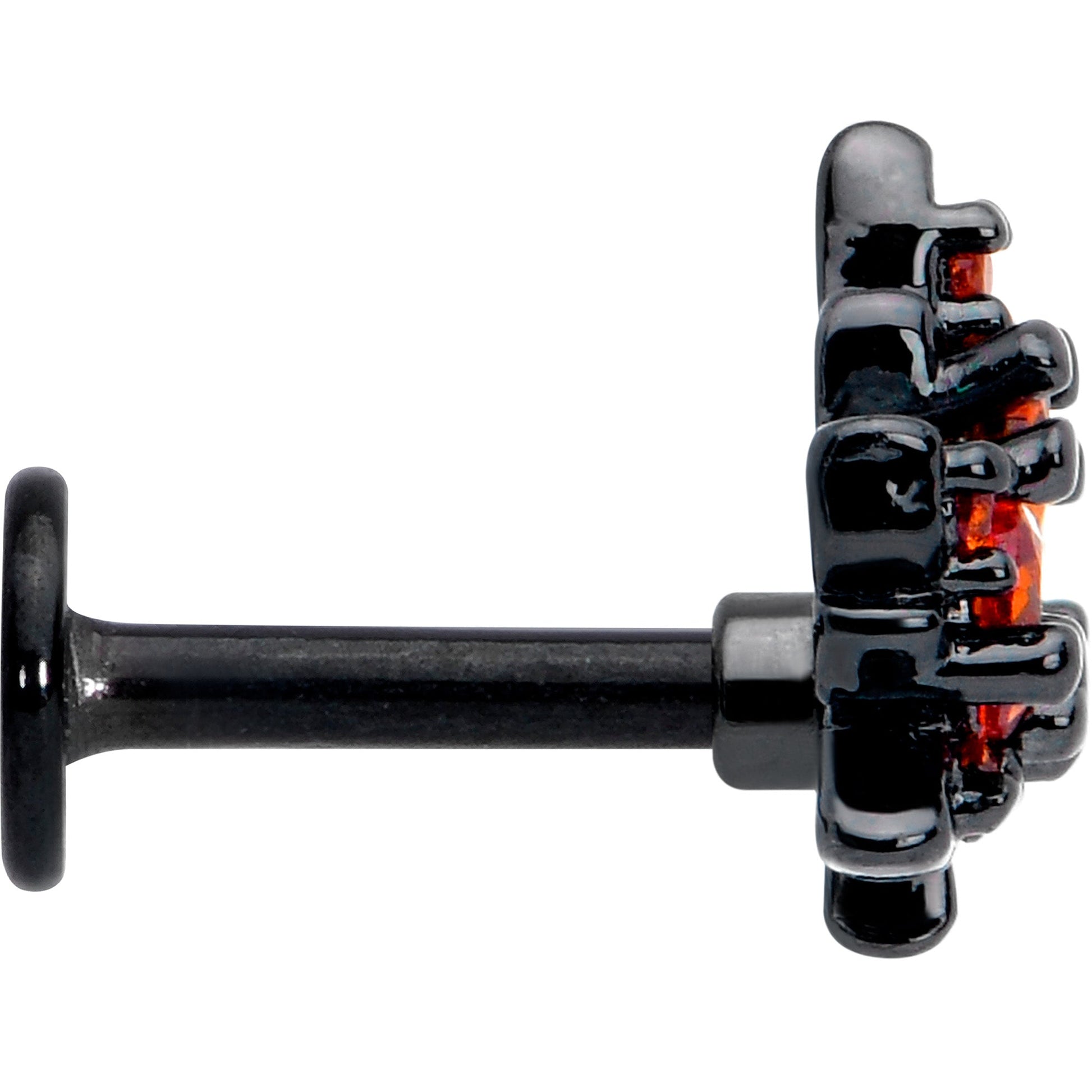 Check out this super comfortable 16 gauge flat back earring for 24/7 wear.. No need to take this earring out; keep it in for sleeping and naps. It's made with a 6mm black PVD over 316L surgical grade stainless steel straight post with a flat disc end. The front end features a maple leaf charm, set with orange cubic zirconia gems. It further features understated detailing. You will be all dolled up for autumn with this classic and colorful ear piercing jewelry.
