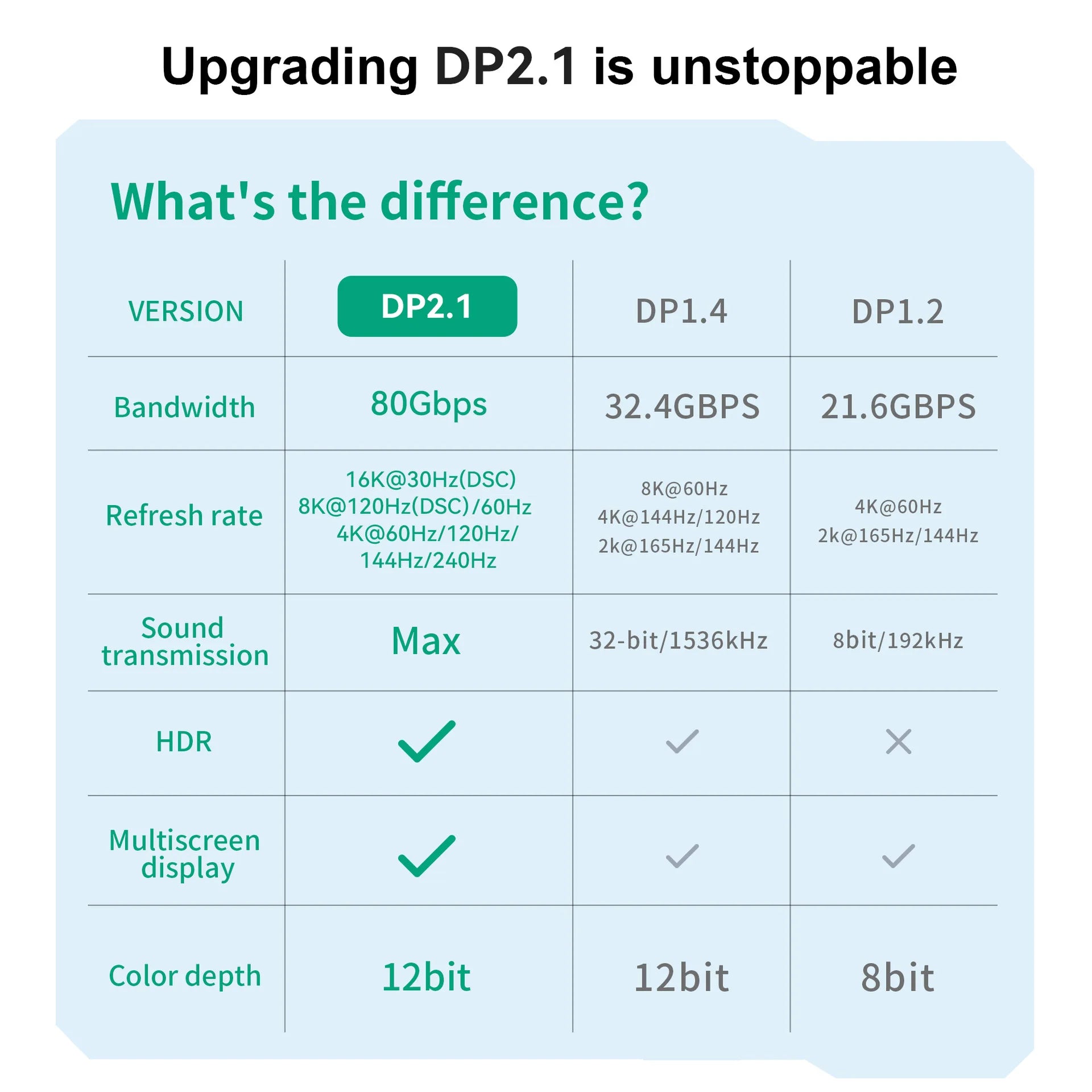 16K Displayport Cable DP2.1 8K@120Hz 4K@240Hz 80Gbps HDR Video Audio Cable for Laptop TV Xbox Projector Gaming Monitor