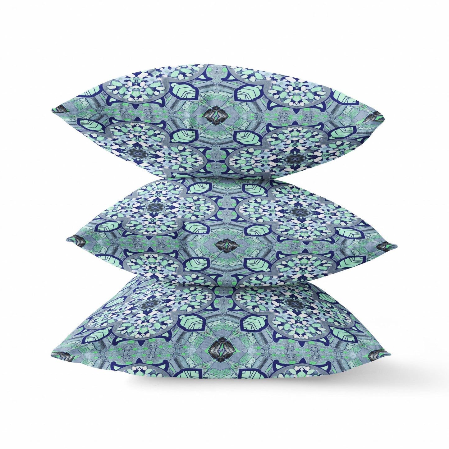 Create the perfect artistry of urban boho with this Blue Aqua Cloverleaf Indoor Outdoor Throw Pillow for the most exclusive take on modern interior design. The relaxing blue and cyan shades show off intricate cloverleaf patterns to fashion a harmonious friendship between modern furniture and boho decorates. Made with the finest broadcloth, the pillow boasts longevity and sturdiness, ideal for both indoor and outdoor use. The blown pillow is filled with high-quality polyester filling to give that airy, soft feel, making it very comfortable to lean on. The oceanic vibes adorned with jewel-toned accents will create a calming and uplifting ambiance in your home. 18” x 18” x 5”