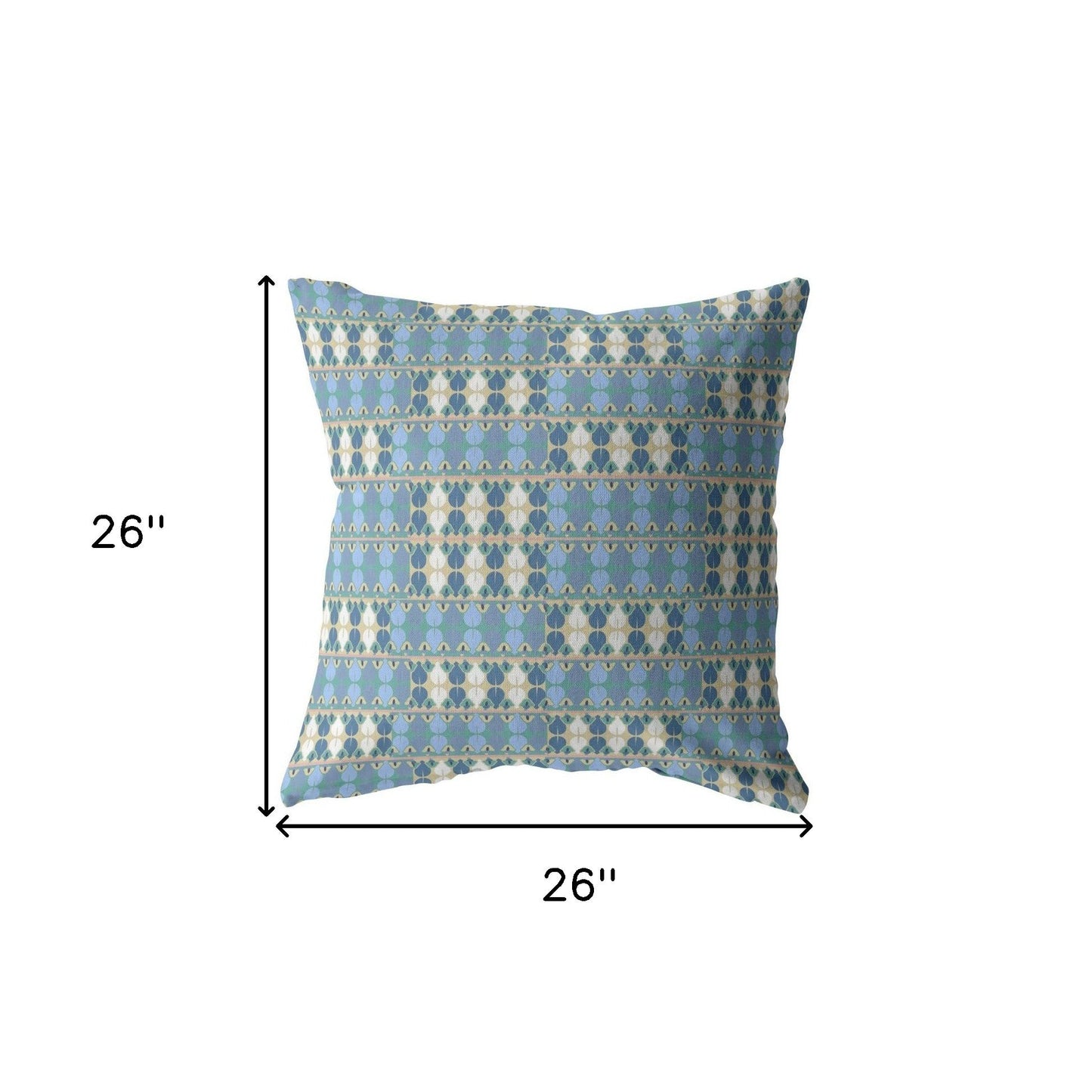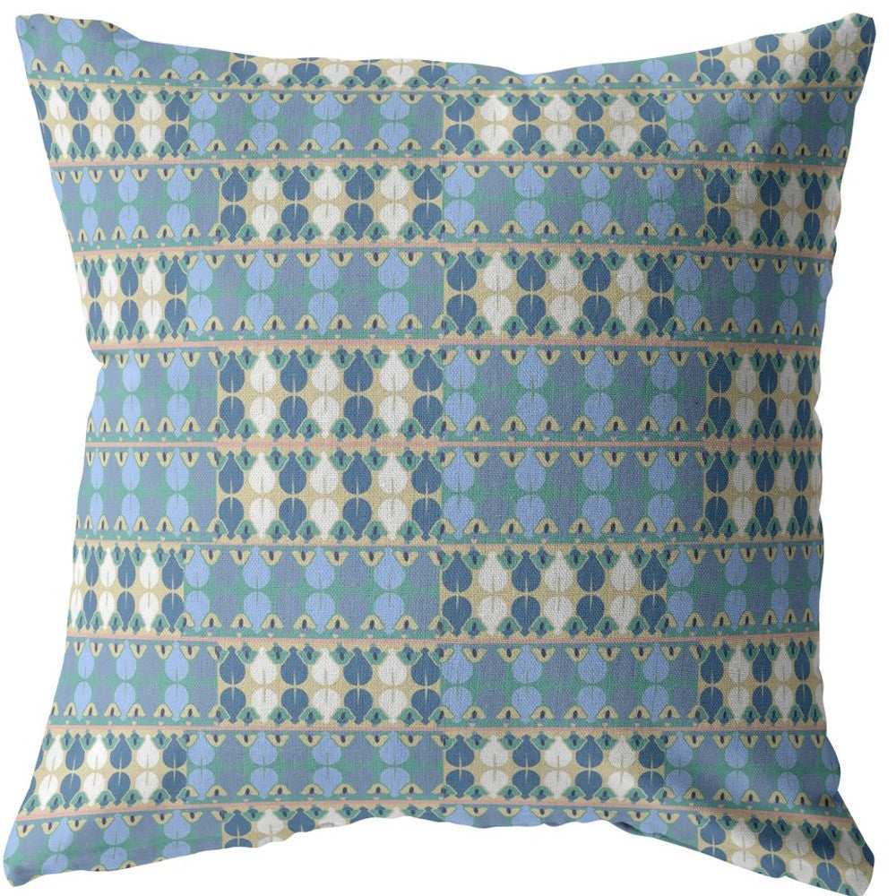 This Blue Cream Spades Indoor Outdoor Throw Pillow is a paradigm of bohemian décor to accompany your modern style. Painted in subtle shades of blue and cream, a geometric spade pattern ties the whole look of the pillow together to give it a stylish appearance. Draped in a sturdy broadcloth material, the pillow is soft to the touch while having extended durability to let it be used in both indoor and outdoor spaces. The decorative pillow is blown and closed with a polyester insert that offers a plush and smooth texture to ensure good posture and a comfortable resting experience. Bring serenity and a breezy ambiance to your living room with this multifaceted pillow that will highlight bohemian, transitional, and modern décor. 18” x 18” x 5”