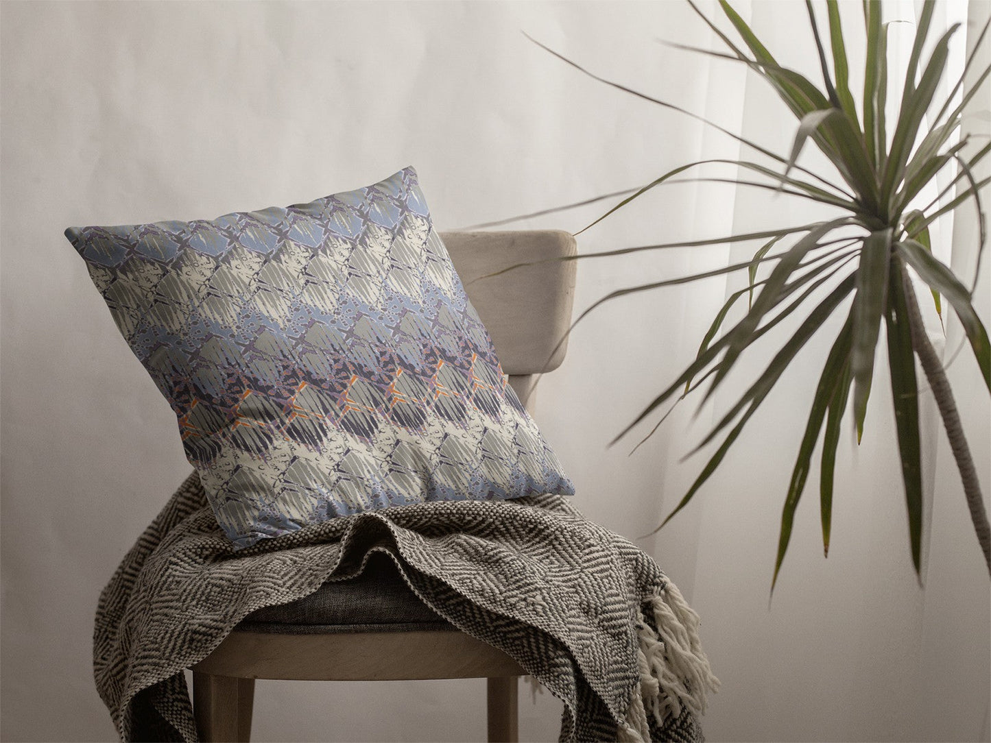 Fashioned with a rich boho-chic aesthetic, this Blue Gray Hatch Indoor Outdoor Throw Pillow will induce a sense of sophisticated elegance in your interior. The exquisite hatch pattern features soft shades of blue and gray with hints of purple and warm orange that look intriguing to the eyes while adding a relaxing vibe to your home. Meticulously crafted with high-quality soft broadcloth fabric, the pillow exhibits a smooth surface texture with a luxurious feel and guarantees its pristine colorization even after long years of use. This blown and closed pillow features a soft and durable polyfill insert, ensuring utmost comfort with a fluffy nature, making it a suitable accent for indoor and outdoor settings. Pair this decorative pillow with neutral or cool-toned decors and it will seamlessly blend in with its surrounding. 18” x 18” x 5”