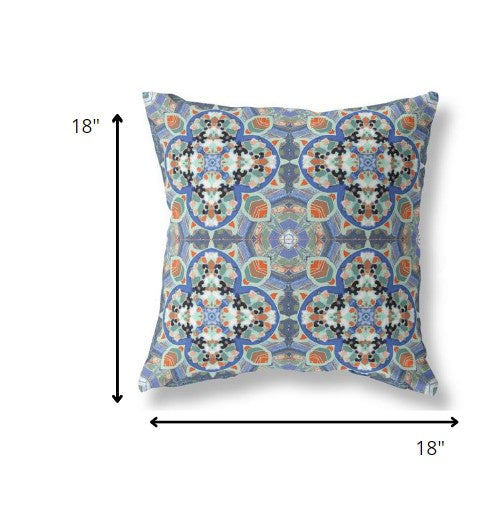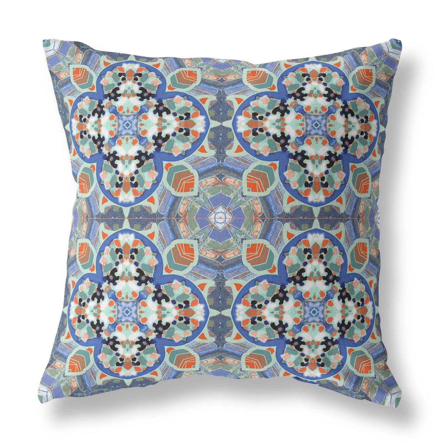 18" Blue Orange Cloverleaf Indoor Outdoor Throw Pillow