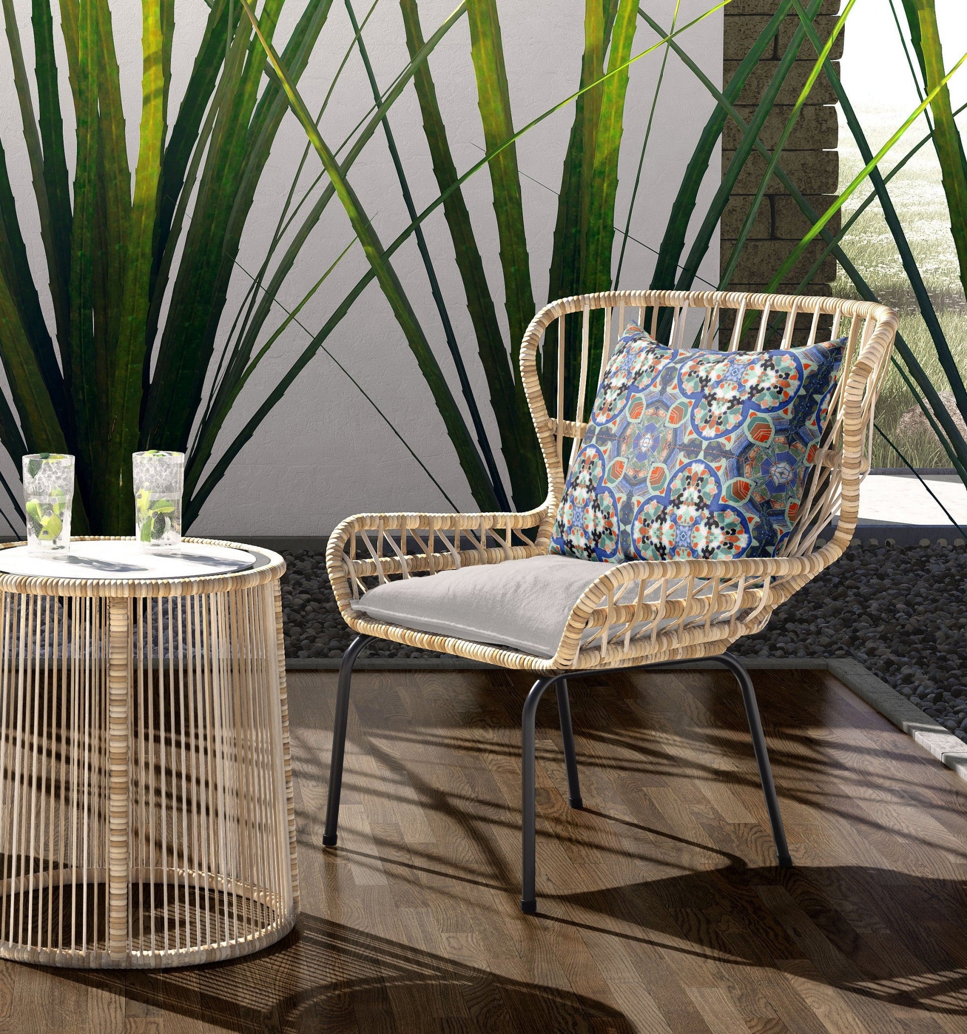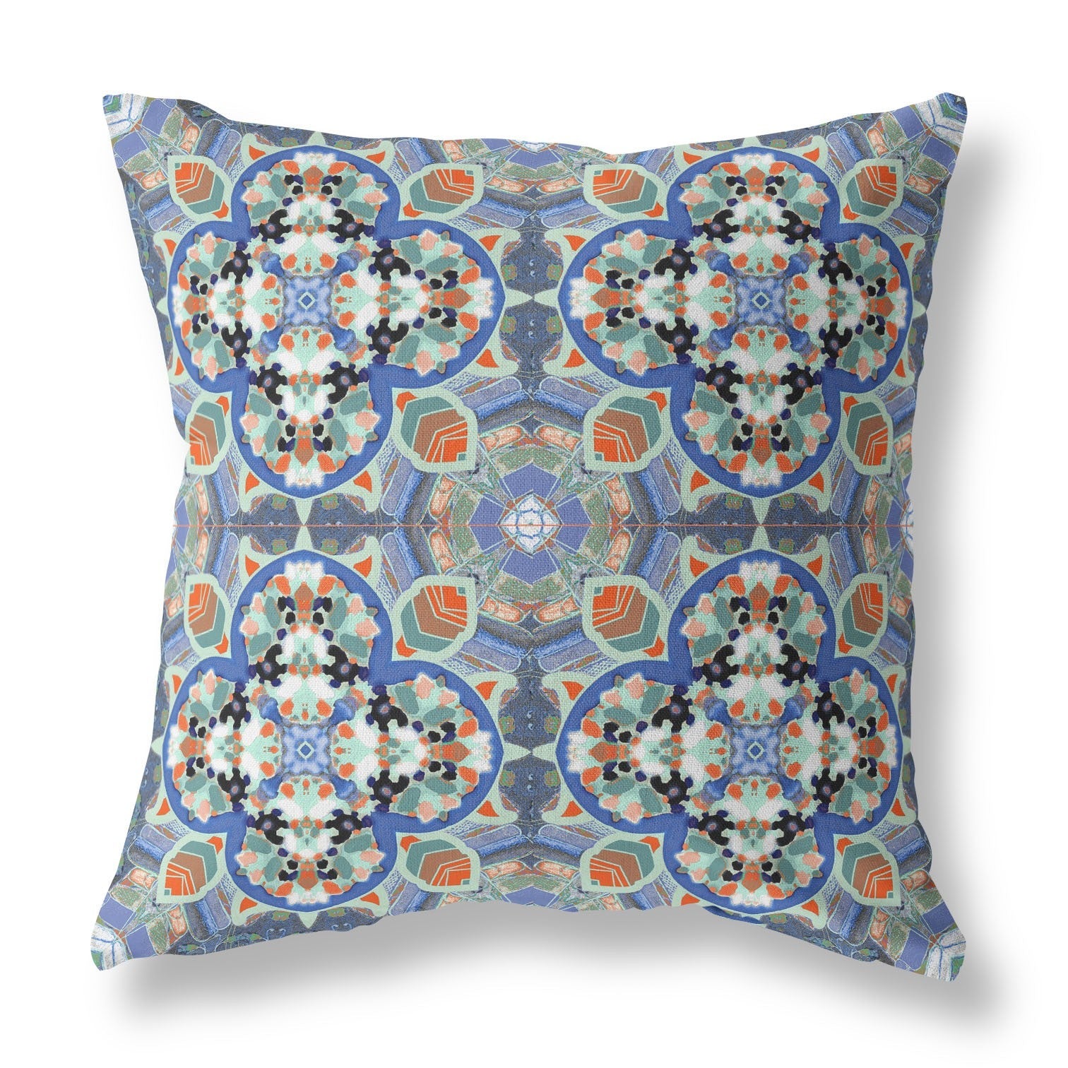 Bold in every right of its own with an eclectic blend of colors, this Blue Orange Cloverleaf Indoor Outdoor Throw Pillow is a staple for the contemporary flower-child aesthetic. The cloverleaf patterns in the relaxing blues and greens against the lively orange tones create the perfect harmony of neutrals and organics. Crafted from premium quality broadcloth fabric to ensure a sturdy construction with a soft hand, giving a plush look to your indoor and outdoor settings. This blown pillow comes with a durable polyfill insert for a soft and cozy feel while providing maximum comfort when you lean on it. Standing out in fashion and function, this decorative throw pillow will add colors and comfort to your modern or bohemian home. 18” x 18” x 5”