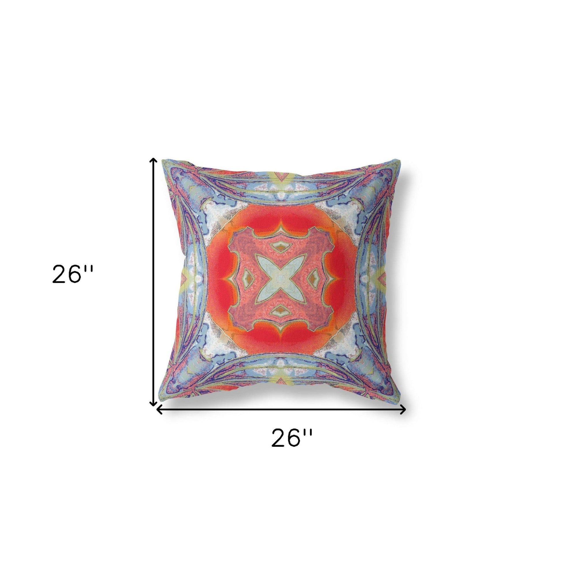 18” Blue Orange Geo Tribal Indoor Outdoor Throw Pillow