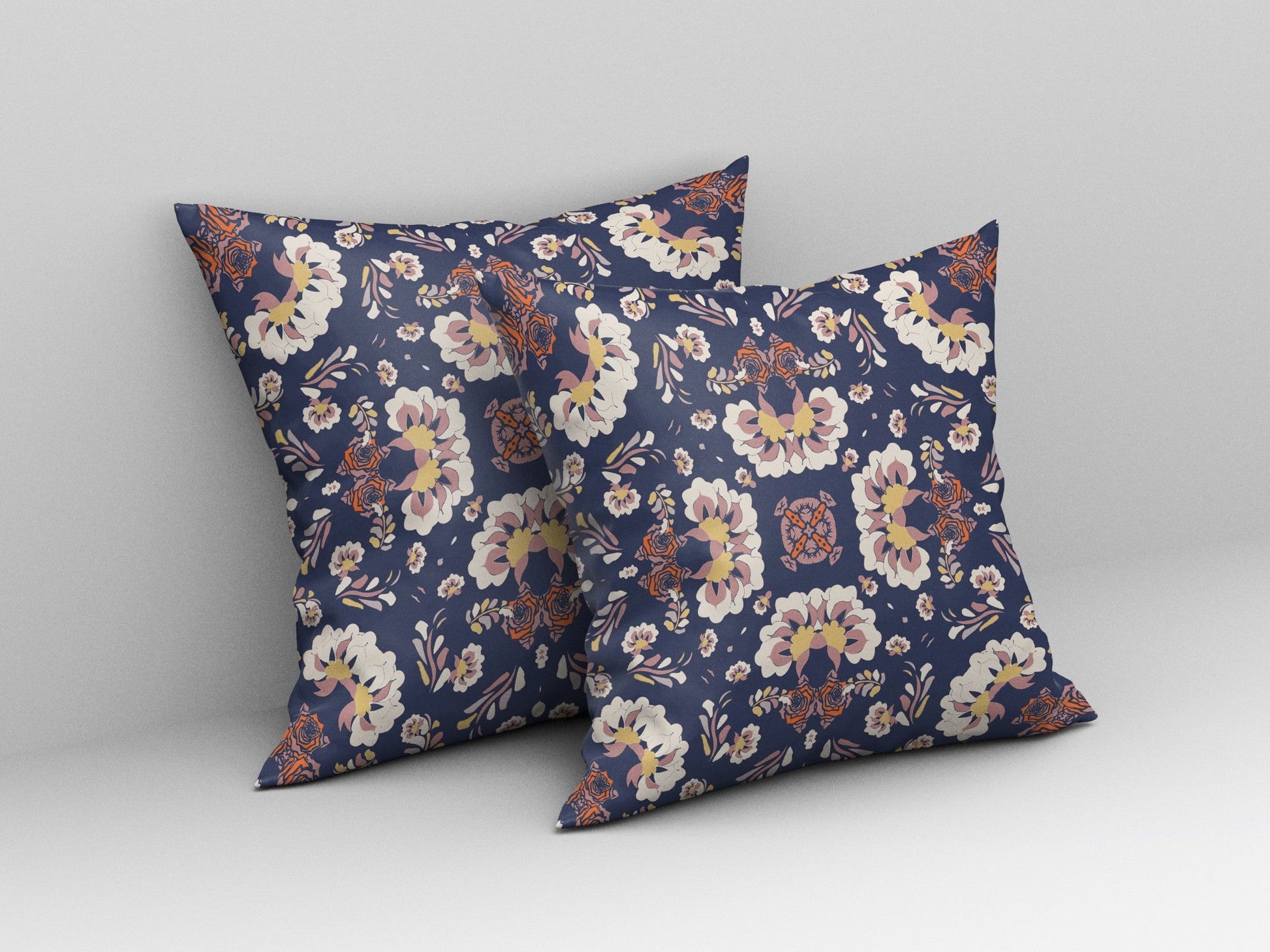 Capture the aesthetic of traditional styling with this Blue White Floral Indoor Outdoor Zippered Throw Pillow that stands out with its old-world pattern and palette. Brimming with floral motifs in pale yellow, mauve, and white over a grayish blue background that gives the piece a classic look and feel. Ideal for indoor and outdoor usage, this pillow is crafted from premium quality broadcloth fabric which ensures durability, soft surface texture, and easy cleaning. The soft polyfill insert offers a luxurious and cozy feel while the zippered closure makes the cover easy to remove and clean. Combining cool-toned pastel shades in an intriguing design pattern, this decorative pillow is sure to allure the gaze of the guests. 18” x 18” x 6”