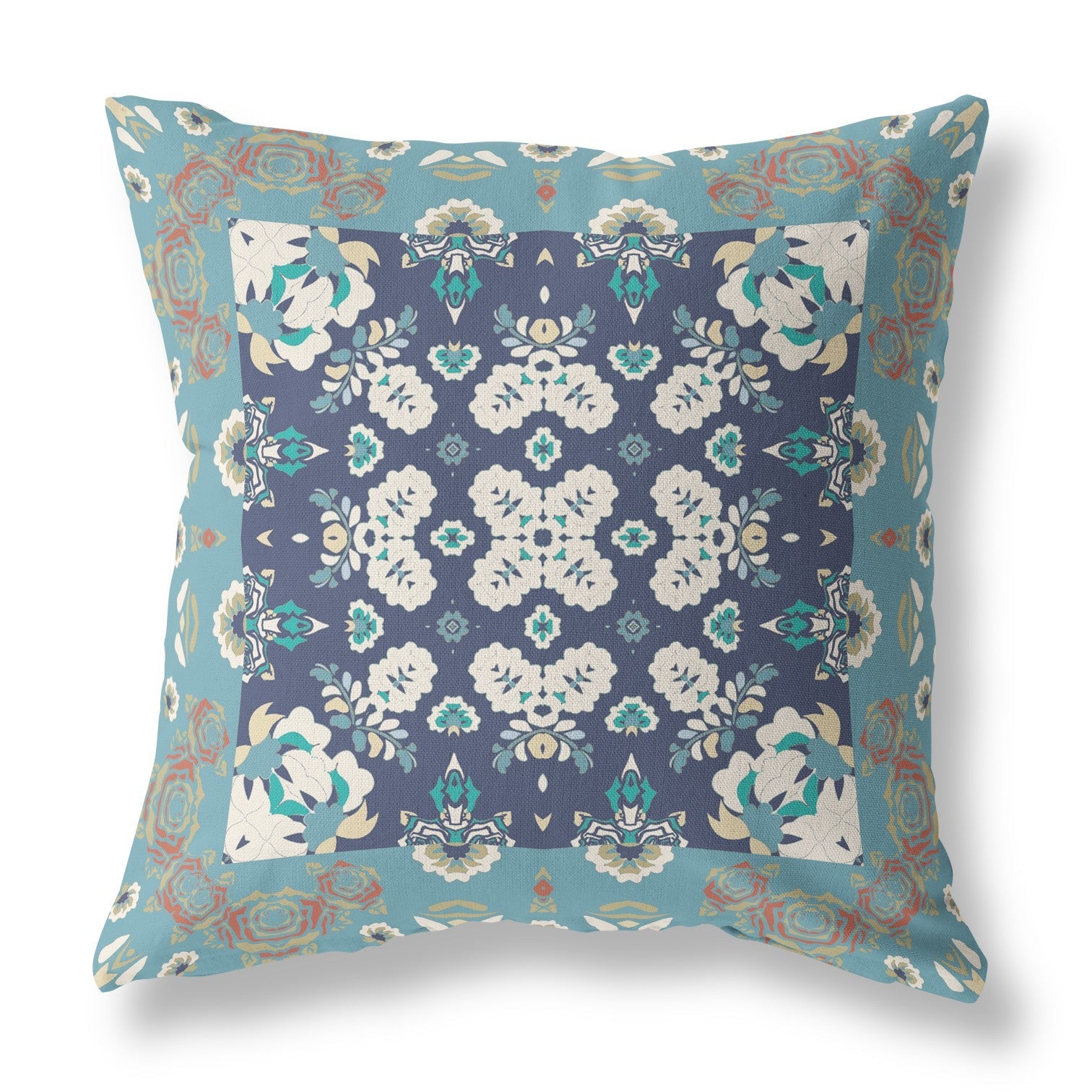 18” Glacier Blue Rose Box Indoor Outdoor Zippered Throw Pillow