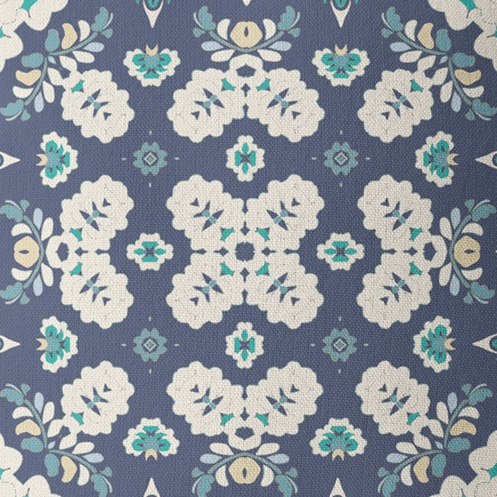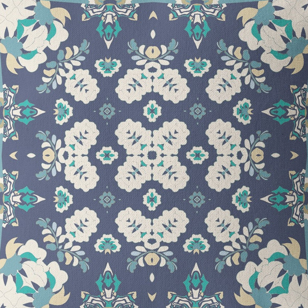 Induce a fresh gardenia aura into your home with this Glacier Blue Rose Box Indoor Outdoor Zippered Throw Pillow paired with your contemporary decor. Featuring a white and muted navy blue rose box over a glacier blue base, this pillow evokes a calm and tranquil vibe wherever your wish to place it. Crafted from the finest broadcloth fabric to ensure durability with a soft hand, it is an ideal accent to add a luxurious look to your indoor and outdoor settings. This pillow is filled with a durable polyester fiber insert, giving it a lavish springy feel with a fluffy nature to provide utmost comfort. The seamless zippered closure makes the cover easily removable for washing. Make your interior aesthetically rich and captivating by displaying this contemporary floral throw pillow on the bed, couch, or sofa. 18” x 18” x 6”