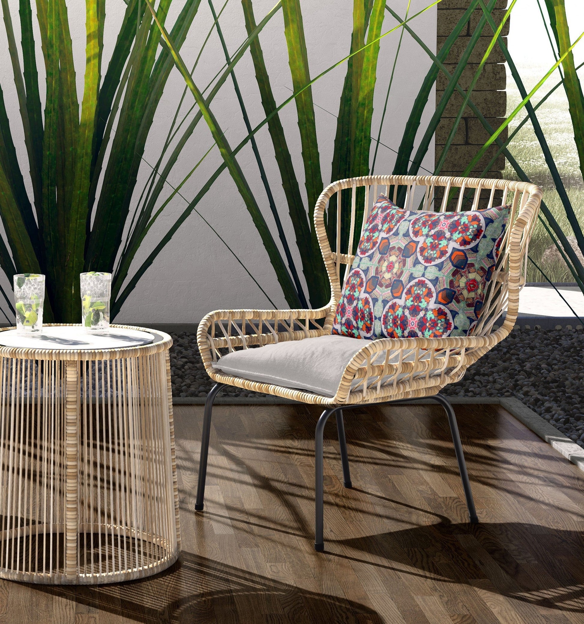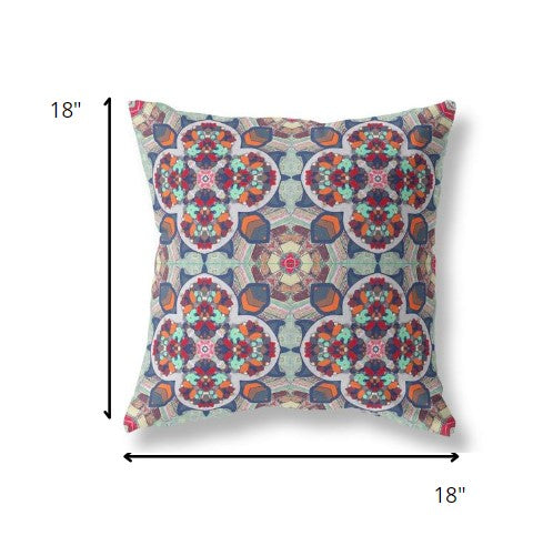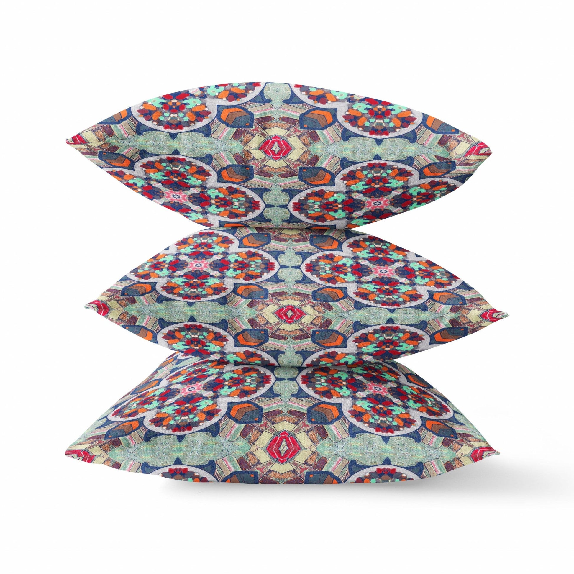 Lend a rich bohemian vibe into your living space with this beautifully designed Green Orange Cloverleaf Indoor Outdoor Throw Pillow. Showing off a cloverleaf-like design pattern in muted green and blues with pops of orange and red hues to strike a balance between warm and cool tones. Crafted from high-quality broadcloth fabric which is smooth and glossy to give a plush appearance to the pillow while being durable to last for a long time. Ideal for indoor and outdoor settings, this blown pillow features a soft polyfill insert that makes it super soft and cozy to rest your head or support your back for maximum comfort. Trendy yet traditional at the same time, this decorative throw pillow features a fusion of colors to spruce up your home. 18” x 18” x 5”