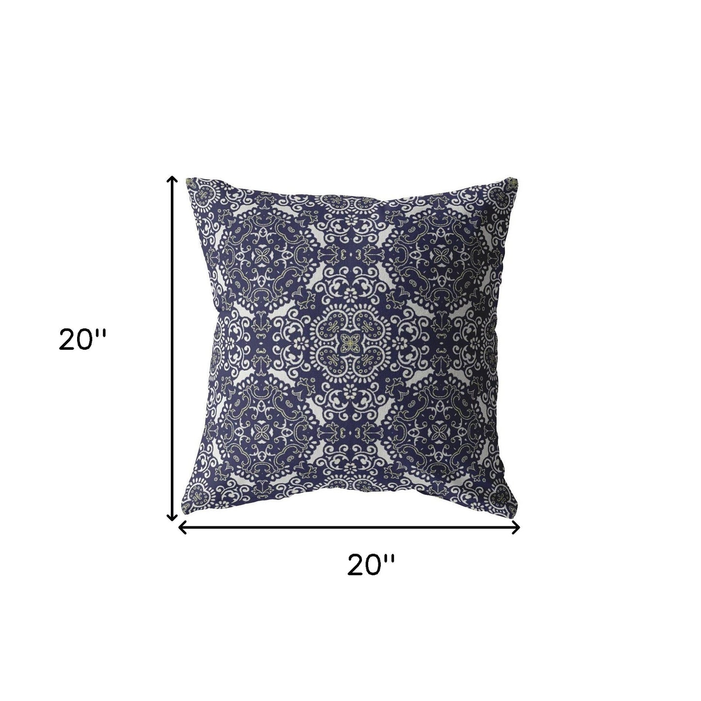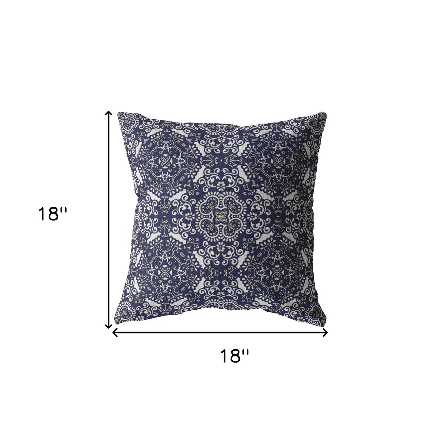 Dive into a new realm of design and culture with this mesmerizing Navy Boho Indoor Outdoor Zippered Throw Pillow, perfect for bohemian and classic settings. The intricate light gray and white-colored pattern work on the navy blue base makes for an alluring and elegant look that you can’t take your eyes away from. The immaculate detail of this beautiful piece comes to life due to the high-quality digital print and premium broadcloth fabric which speaks for its durability and easy maintenance. crafted with a premium polyester insert to ensure complete relaxation in both indoor and outdoor settings while looking pristine for ages. This blown pillow features 100% polyester fiber filling, which gives the piece a luxurious cushiony feel with a fluffy nature to provide ultimate comfort when you lean on it. You can easily remove the cover for cleaning without any hassle, thanks to the in-built zipper on it. The bold color palette and intricate design elements make this decorative pillow a stunning accent to spruce up your boho-chic home. 18” x 18” x 5”