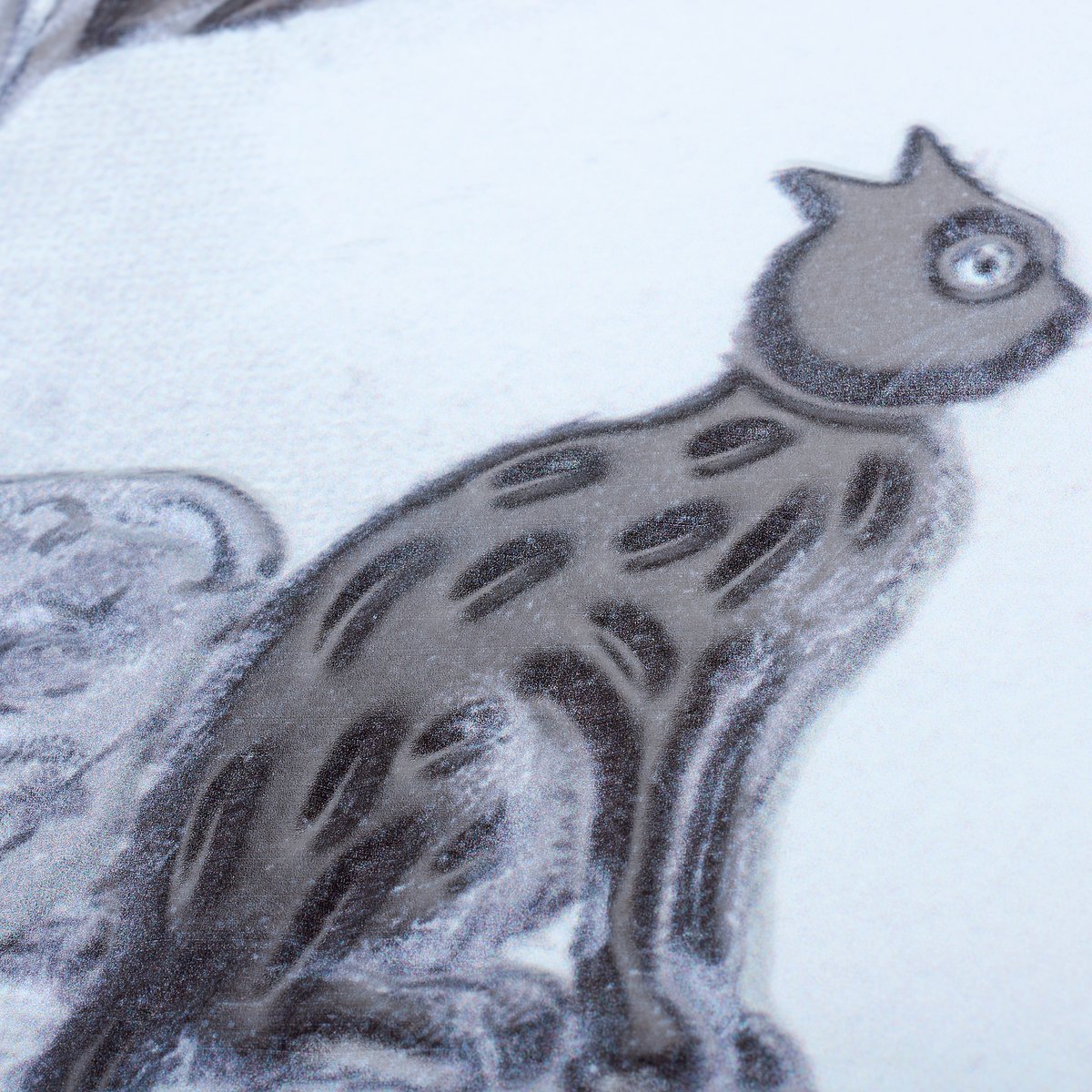 A metal wall décor piece from our Haunted White Collection displaying a witch and black cat riding on a broom in a monochrome hand illustrated style. Halloween sign features embossed details for added dimension. Our Nimbus Witch metal wall décor is easy to hang for display via the attached sawtooth hanger. A neutral Halloween home accent perfect for seasonal display.