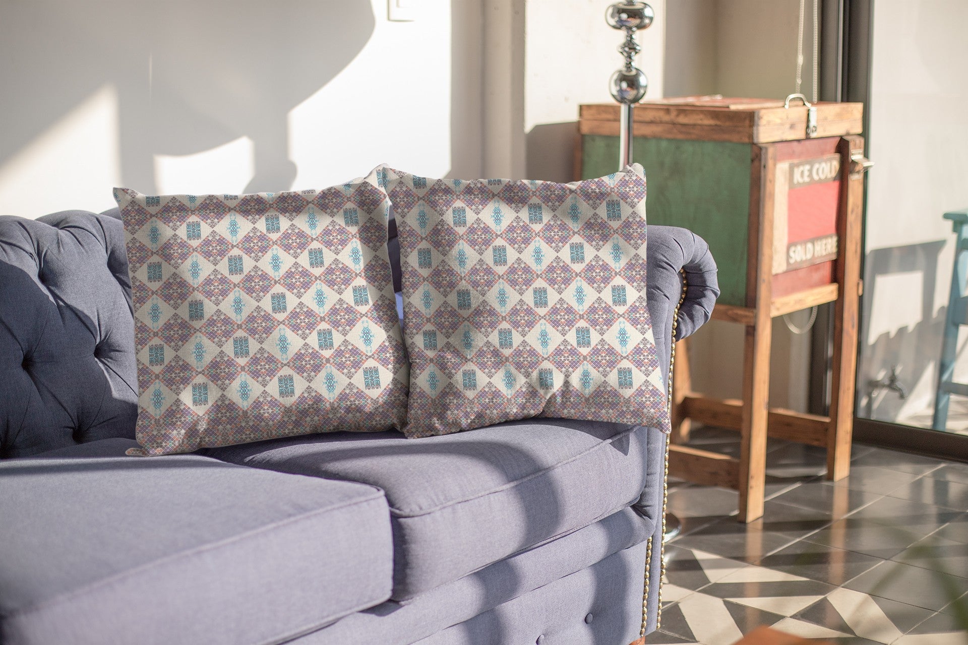 Entertain your love for symmetry and uniqueness with this Pink Lattice Indoor Outdoor Throw Pillow that is bound to bring calming vibes into your home. This pillow hosts geometric lattice patterns in muted pink, purple, and blue to create a subtle yet stunning visual appeal that will blend in with any modern or bohemian setting. The high-quality digital prints on the pillow are made to last for a long time without losing their pristine look and shine. Crafted from premium broadcloth fabric, this piece ensures that you get the best quality in terms of looks and comfort while making it an ideal accent for indoor and outdoor use. The soft polyfill insert adds to the plush fluffy look maximizing warmth and comfort. Combining on-trend patterns in a pastel color palette, this pillow will add a sense of serenity to your boho-chic home. 18” x 18” x 5”