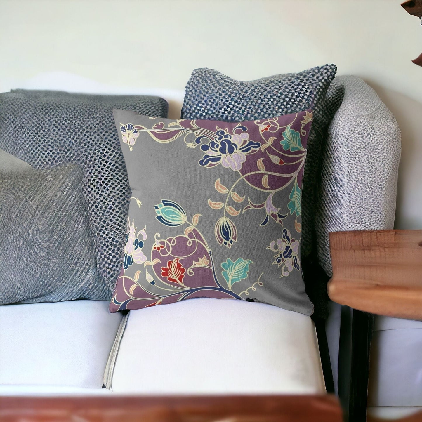 18" Purple Gray Garden Indoor Outdoor Throw Pillow