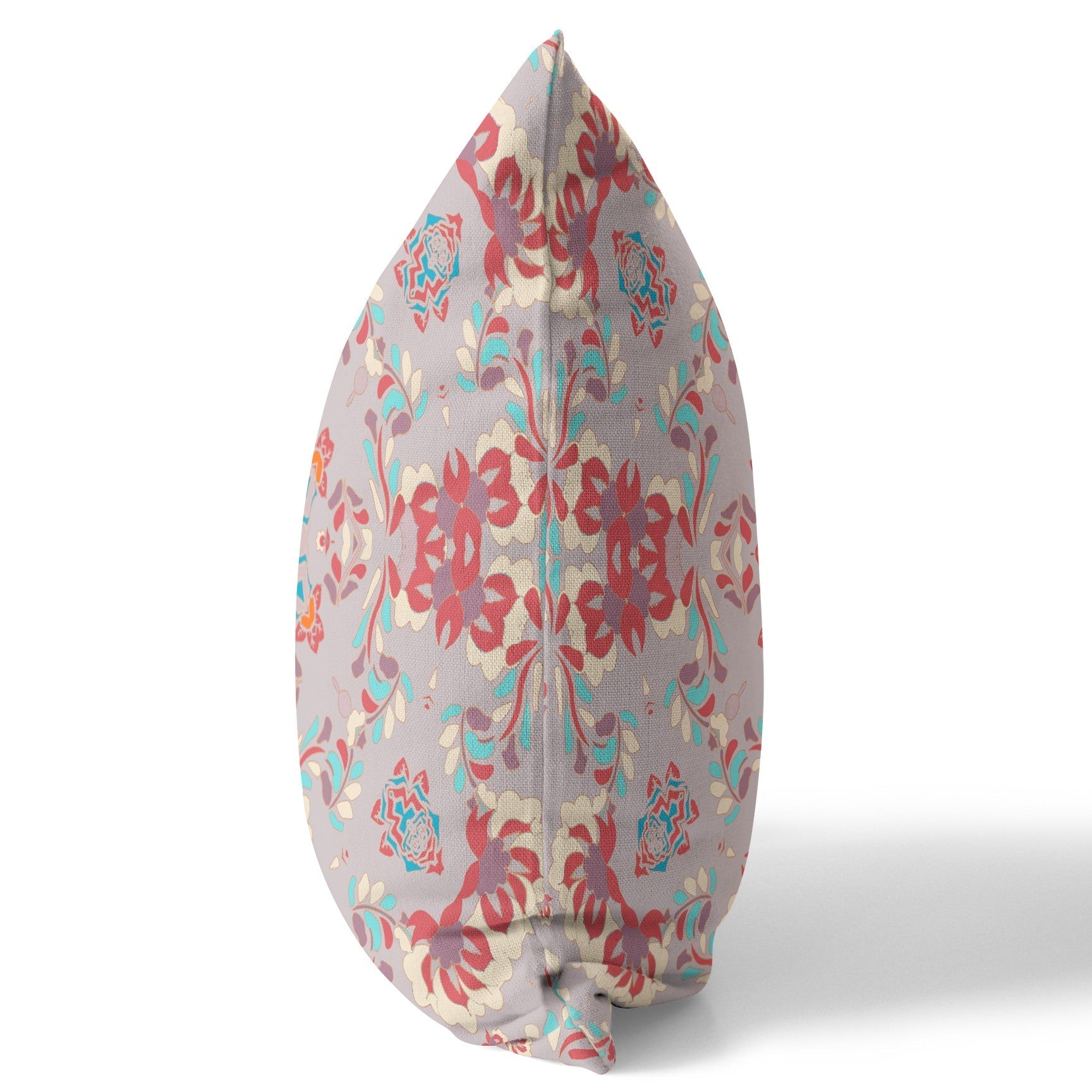 Bring a joyful ambiance into your home with this Purple Red Filigree Indoor Outdoor Zippered Throw Pillow. Inspired by traditional design elements, this pillow features circular floral filigree in shades of muted red and blue over a pale purple background to evoke a sense of love and calmness in the room. The soft yet sturdy broadcloth fabric makes this pillow a stylish accent while the soft polyfill insert provides maximum comfort. This decorative throw pillow is neatly zippered for a seamless finish while making the cover easy to remove and wash without any hassle. Update the aesthetics of your bed or couch with this eye-soothing decorative pillow that will stand out in fashion and functionality for years to come. 18” x 18” x 6”