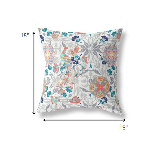18" White Orange Peacock Indoor Outdoor Zip Throw Pillow