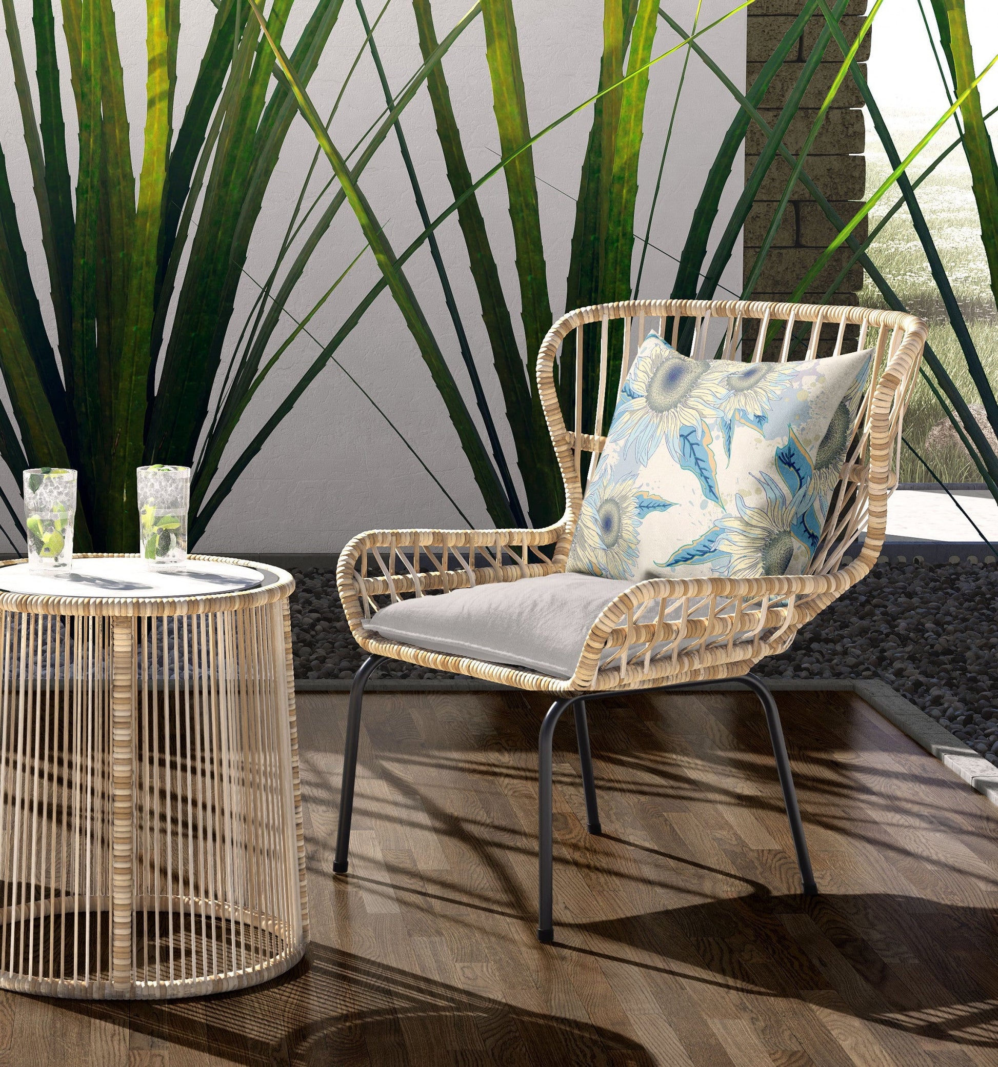 This timeless White Yellow Sunflower Indoor Outdoor Zippered Throw Pillow will bring a sleek aesthetic to your modern interior. Bathed in a creamy white base accented by blue sunflowers, the decorative pillow exudes a calm and comforting beauty. Constructed from high-quality broadcloth fabric that is durable and robust, the pillow is ideal to complement both indoor and outdoor settings. The zippered cover is removable, making the pillow easy to clean and the soft polyester insert gives it a comfortable and cozy texture with a fluffy appearance. The awe-inspiring look of this decorative pillow is sure to highlight your contemporary or modern interior, giving it a crisp and fresh visual. 18” x 18” x 5”