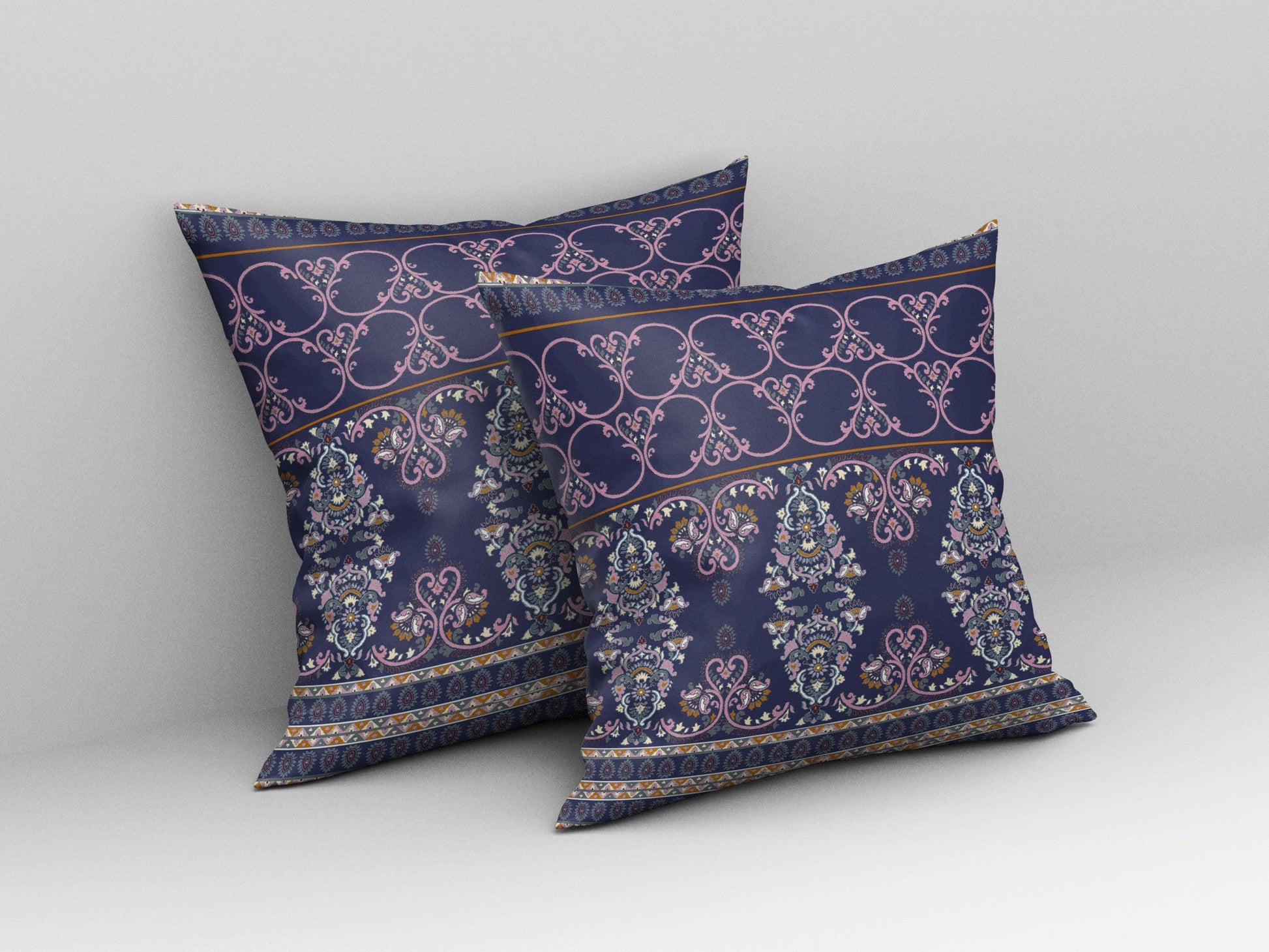 Add an air of fashion to your room and rejuvenate the space with this cute and fashionable 18" x 18" blue and pink zippered damask indoor outdoor throw pillow. The blue and pink coloring of the extremely durable and long lasting broadcloth will add dimension and texture to your space. A great decorative accessory to decorate indoors or out. Decorative pillows are a great way to change up the look and feel of your space easily and quickly. 6" H x 18" W x 18" D