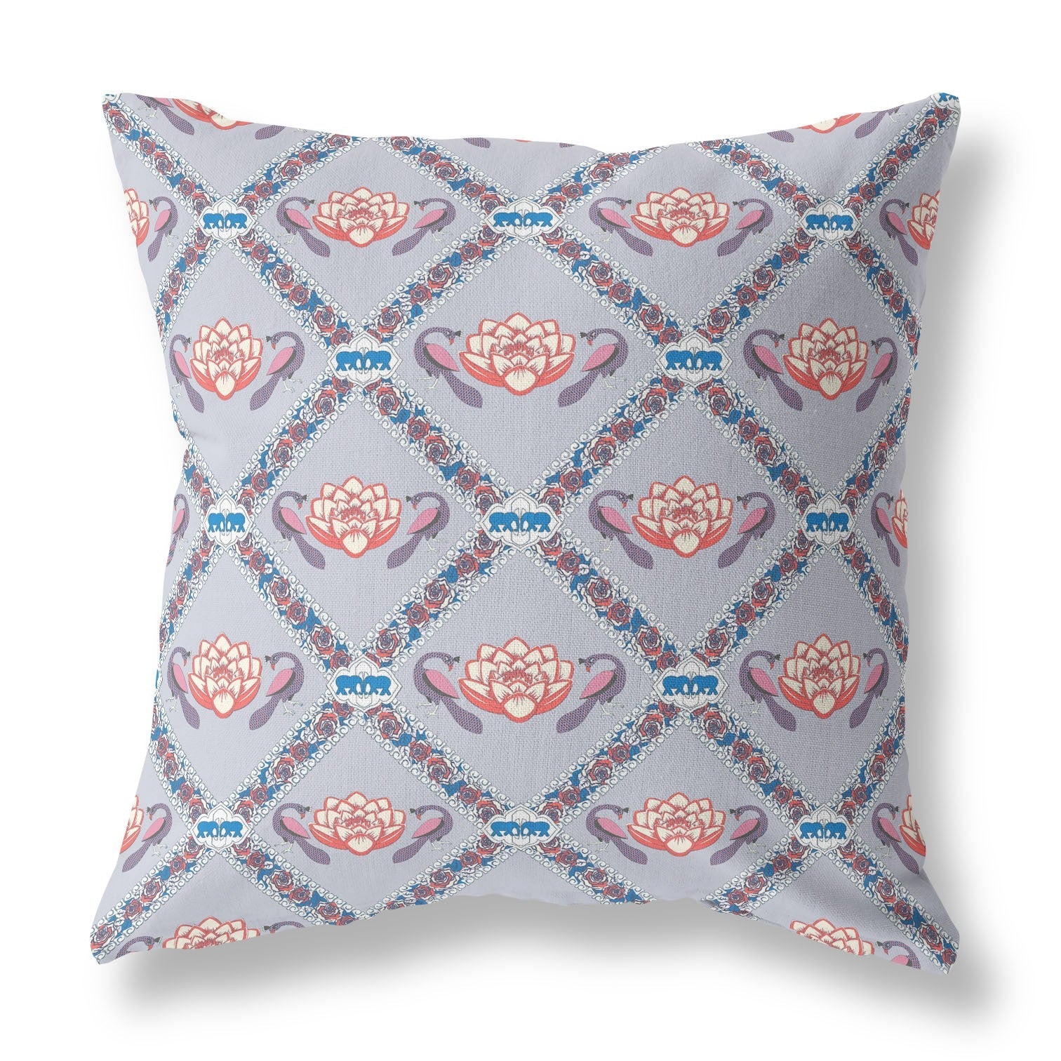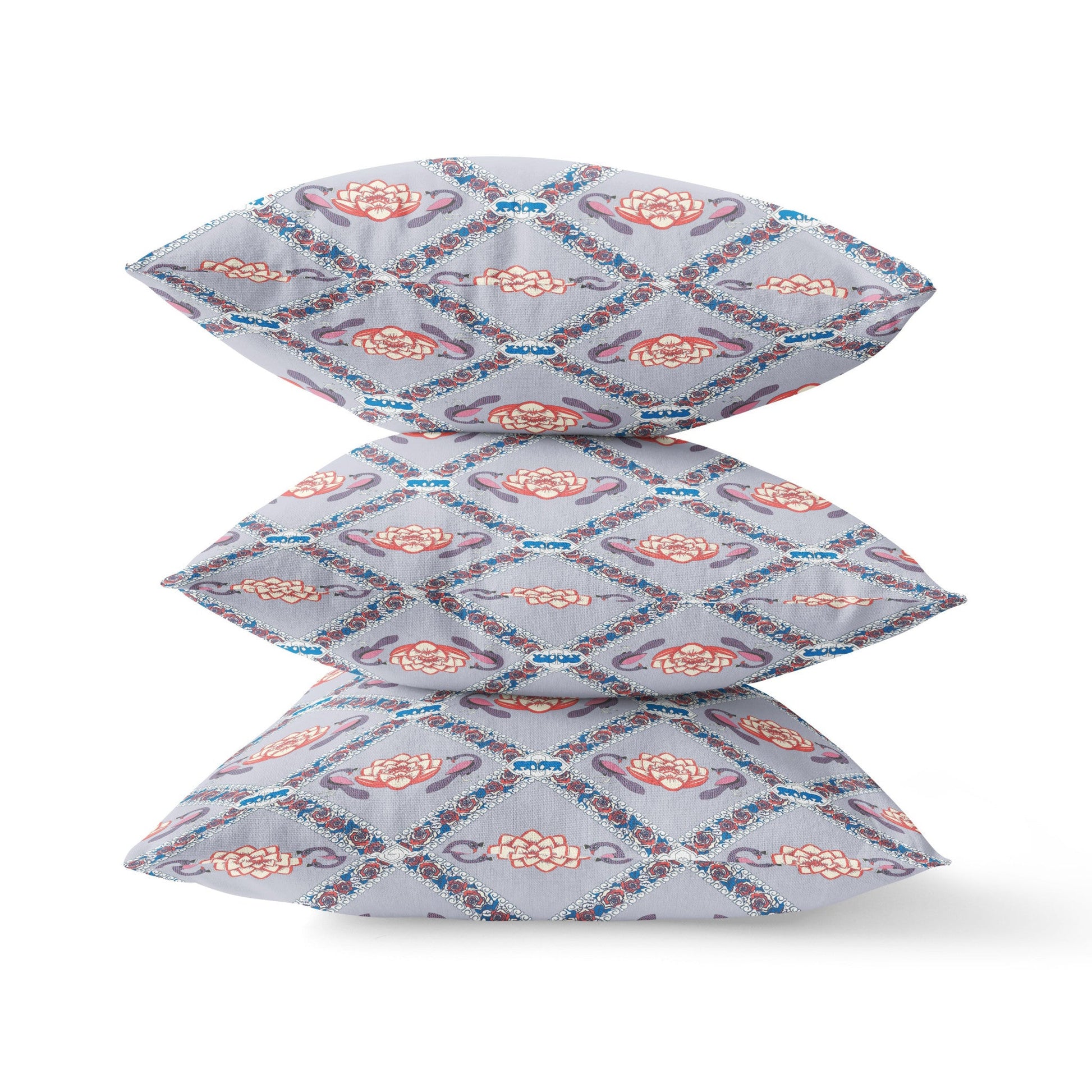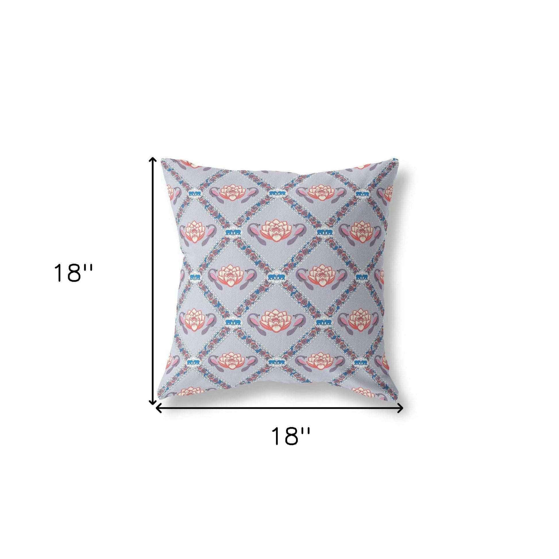 18" X 18" Gray And Blue Blown Seam Geometric Indoor Outdoor Throw Pillow