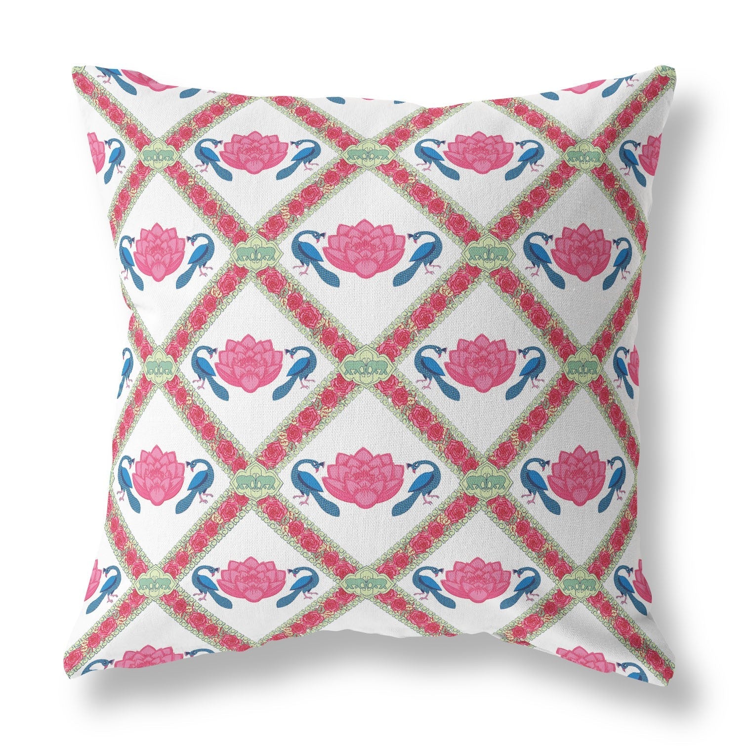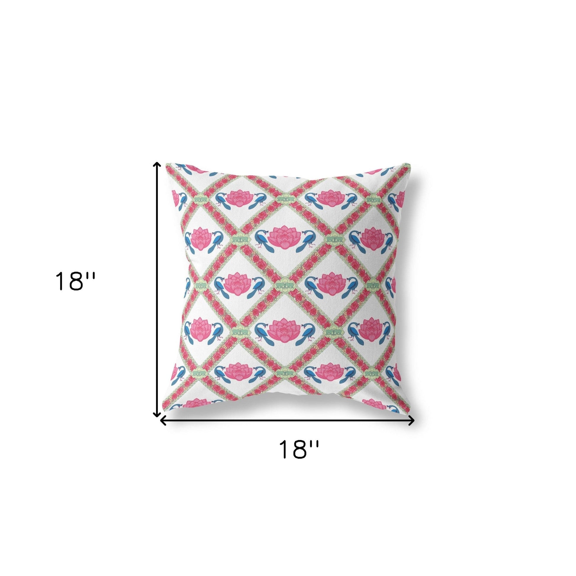 18" X 18" Pink And White Blown Seam Geometric Indoor Outdoor Throw Pillow