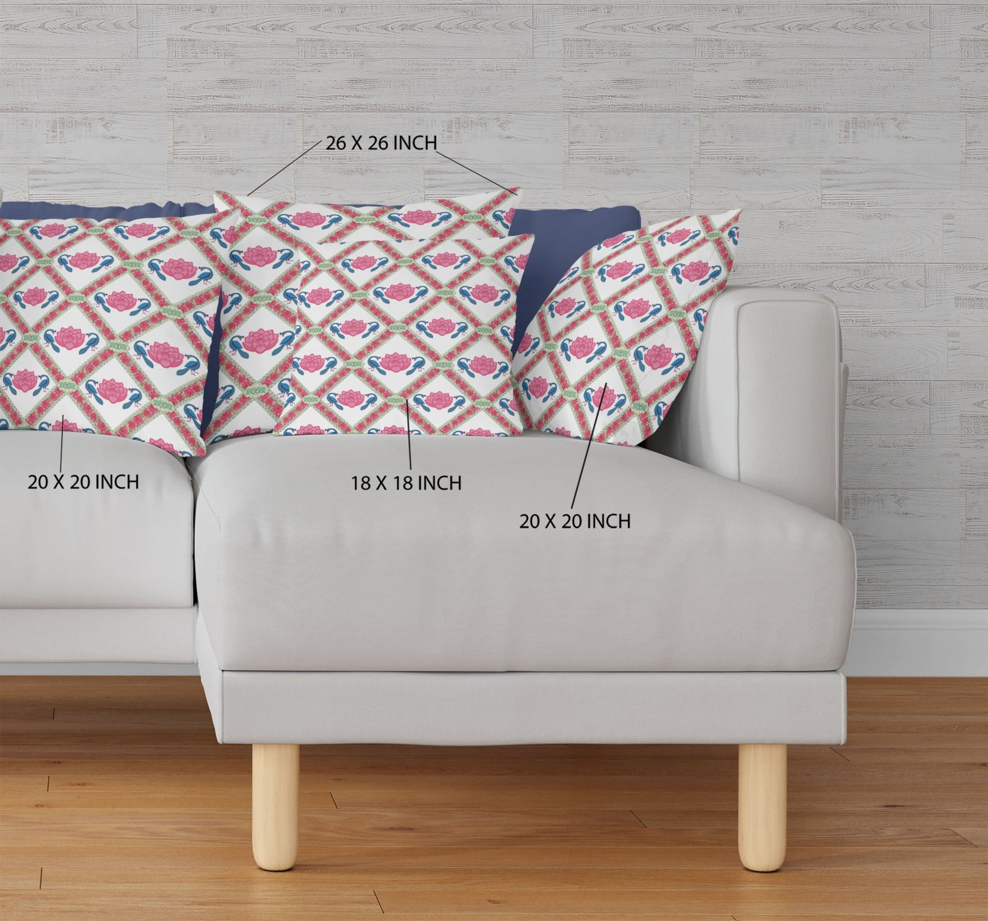Bring a bit of fashion and zip to your space with this eye-catching and comfy 18" x 18" pink and white blown seam geometric indoor outdoor throw pillow. Durable pink and white suede has been used to give this pillow a beautiful look that will stand the test of time. A great decorative accessory to decorate indoors or out. Decorative pillows are a great way to change up the look and feel of your space easily and quickly. 5" H x 18" W x 18" D