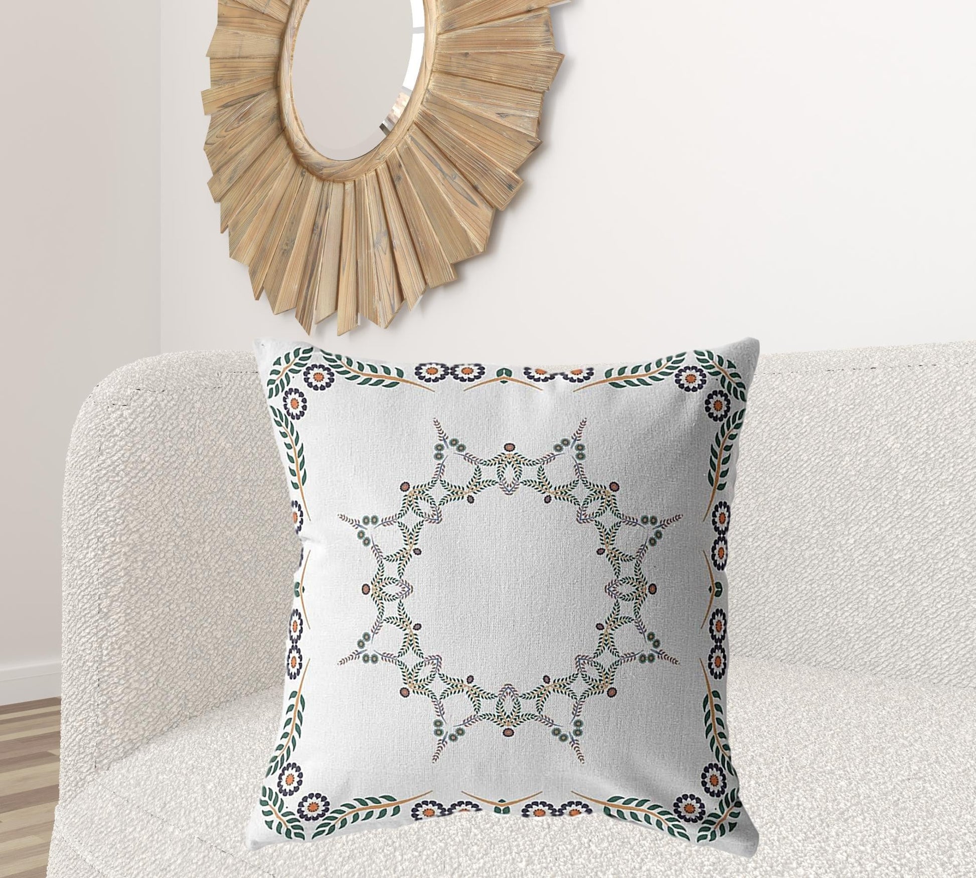 Bring a bit of fashion and zip to your space with this eye-catching and comfy 18" x 18" white blown seam geometric indoor outdoor throw pillow. Durable white broadcloth has been used to give this pillow a beautiful look that will stand the test of time. A great decorative accessory to decorate indoors or out. A great decorative accessory for your favorite chair or to accent your sofa. 5" H x 18" W x 18" D