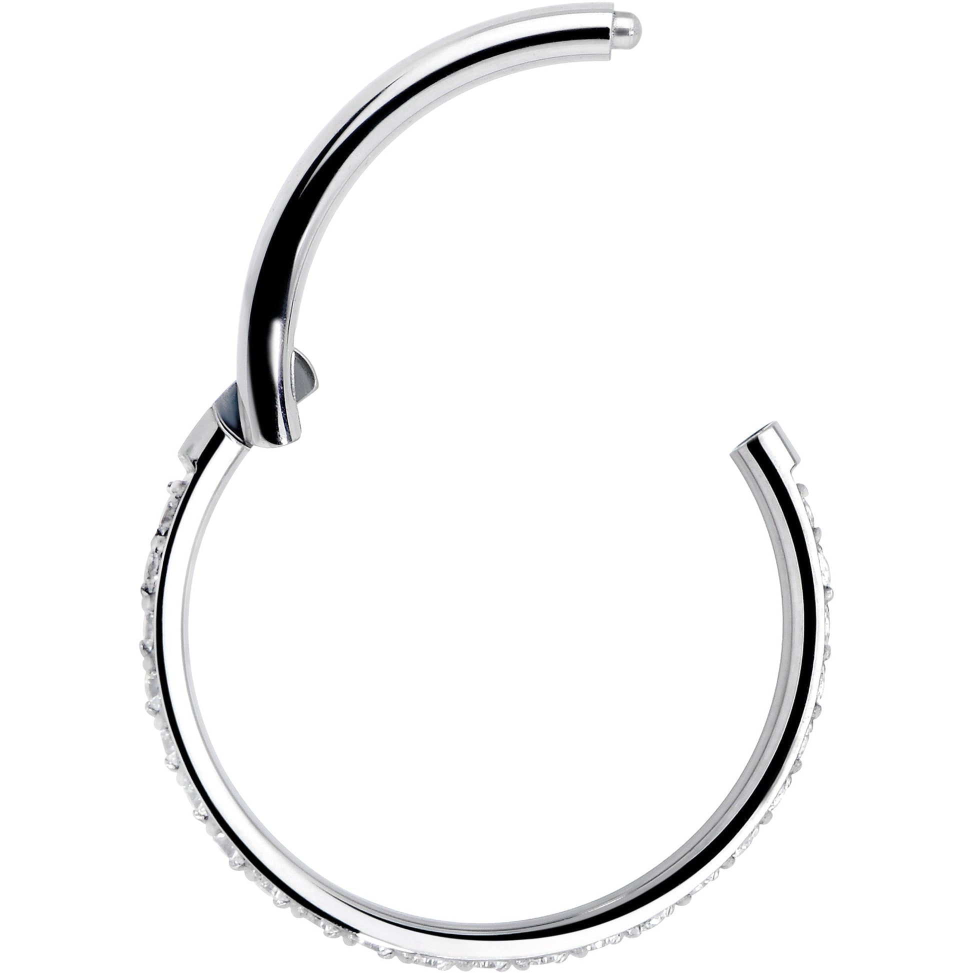 18 Gauge 3/8 Clear CZ Gem Titanium Forward Facing Hinged Segment Ring