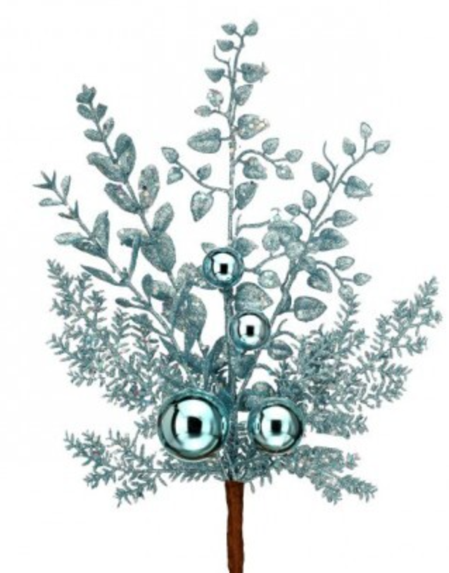 18"GLITTER BALL BERRY SPRAY LIGHT BLUE