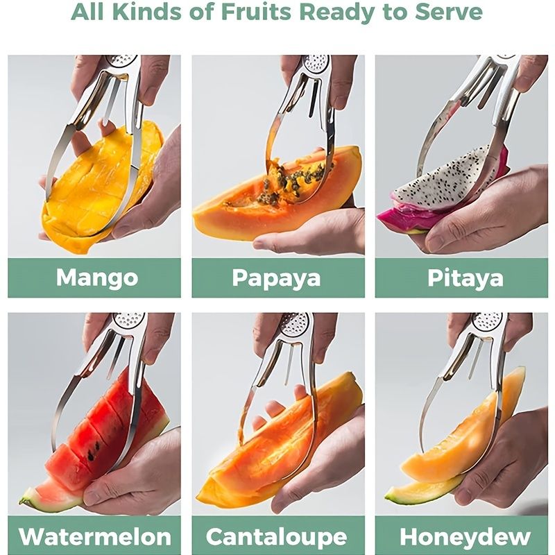 1pc 4-in-1 304 Stainless Steel Mango Divider Cuber - Slicer, Peeler, Cutter, and Remover for Watermelon, Dragon Fruit, Avocado, and More