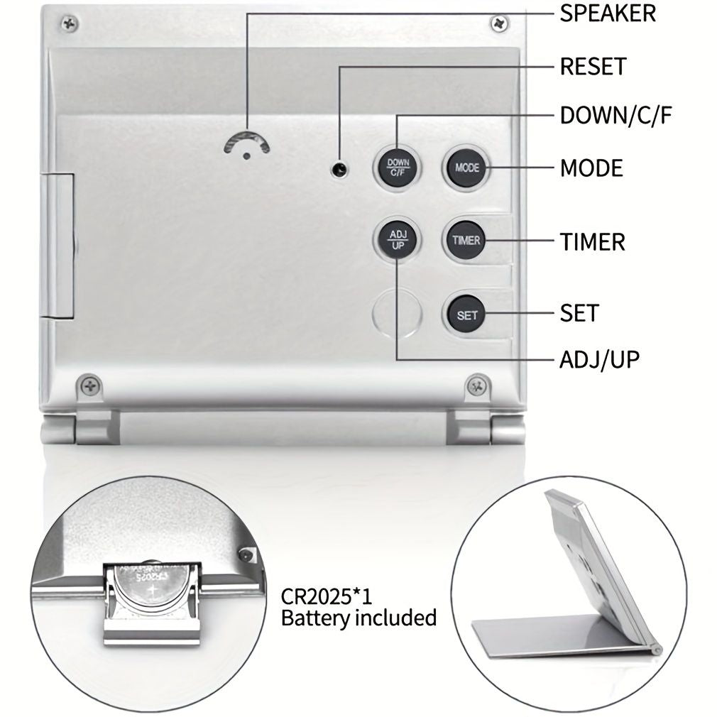 1pc, Foldable Digital Alarm Clock with Calendar, Temperature, and Battery Operation - Perfect for Bedroom, Living Room, and Office