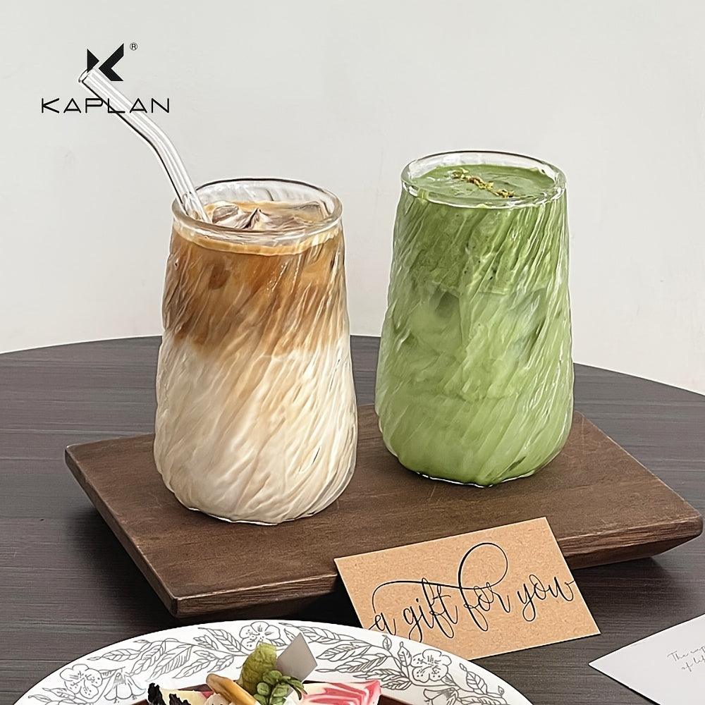1pc Glacier Ribbed Glass Coffee Mug - Large Capacity Iced Coffee Latte