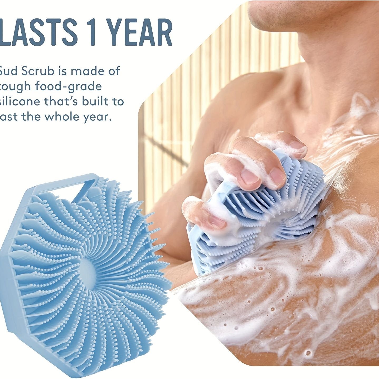 1pc Soft Silicone Body Brush Bath Body Brush, Massage Rubbing Device, Natural Bristle, Soft Scrubber, For Shower And Exfoliating