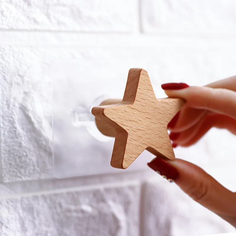 Creative Cute Star Moon Shape Nail-free Wall Clothes Hooks Kids Room Decorative Key Hanging Hanger Kitchen Storage Hook