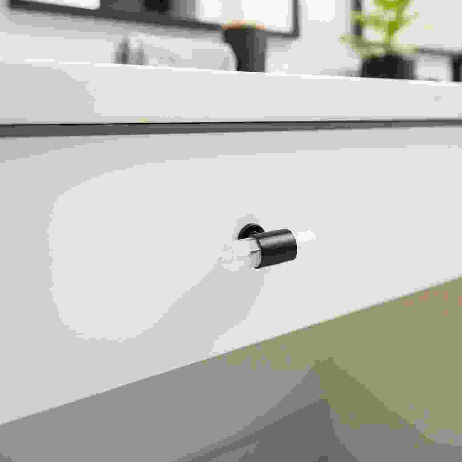 The Satin Nickel finish coordinates with most silver finishes including Stainless Steel. The warm silver tone features lengthwise brushing and a glossy protective coating that is softly reflective. The crystal is a semi-transparent white color with naturally occuring organic veins.