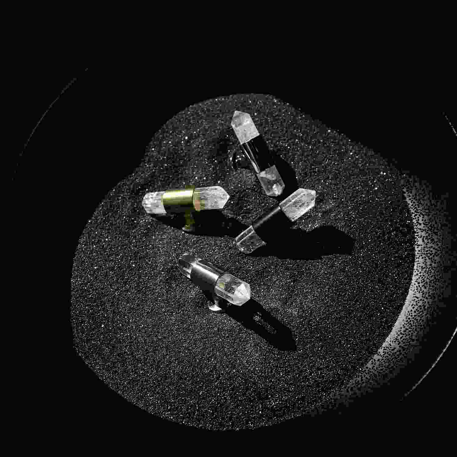 Born of igneous rock and geothermal aquatic environments, authentic quartz crystals gleam in the light. Individual spectral veins and natural bubbles come together to form an abstract pattern unique to every piece; Aura embraces the random formations of nature, while being grounded on a modern base.