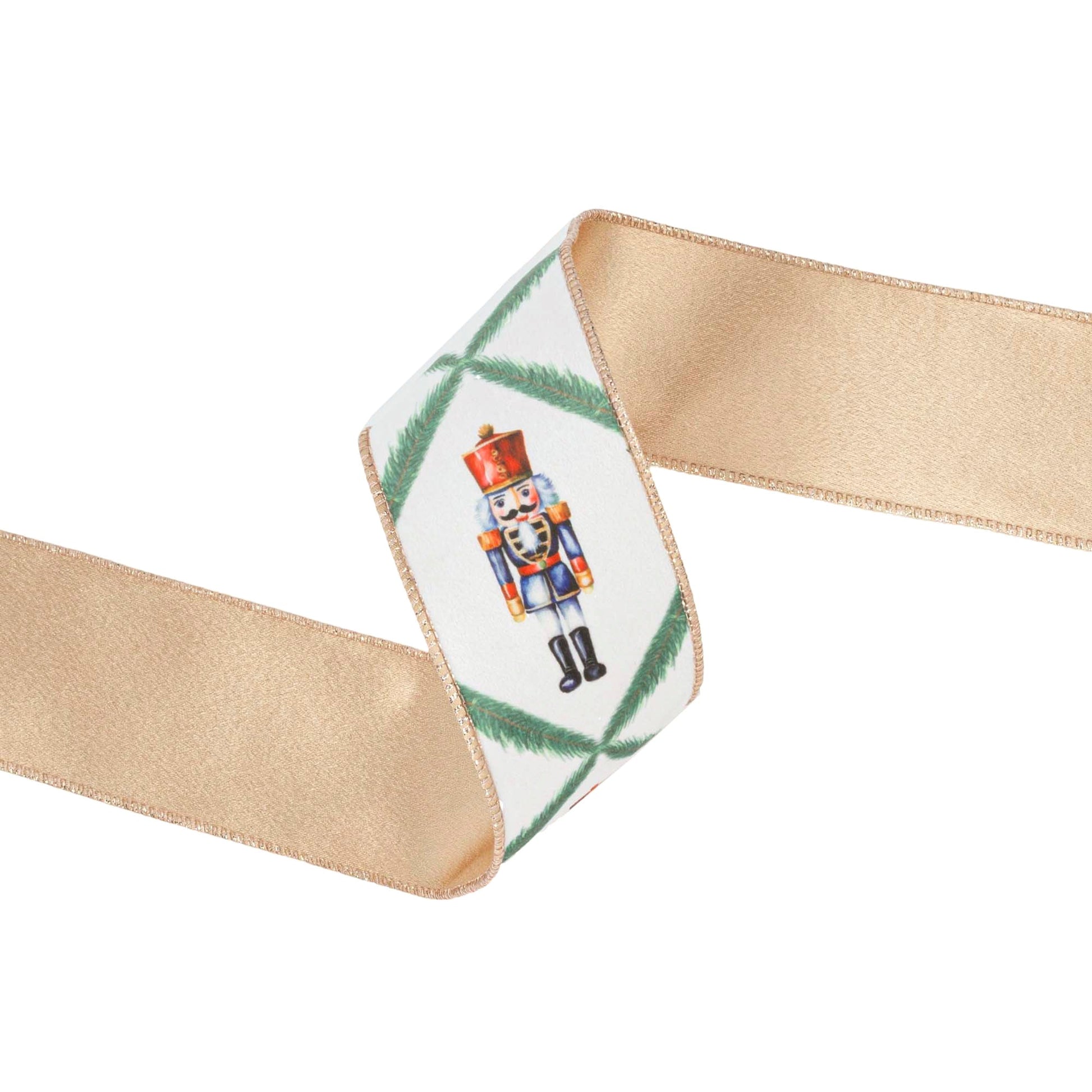 2.5" x 10 yards Wired Velvet | Nutcracker with Northfolk Pine on White