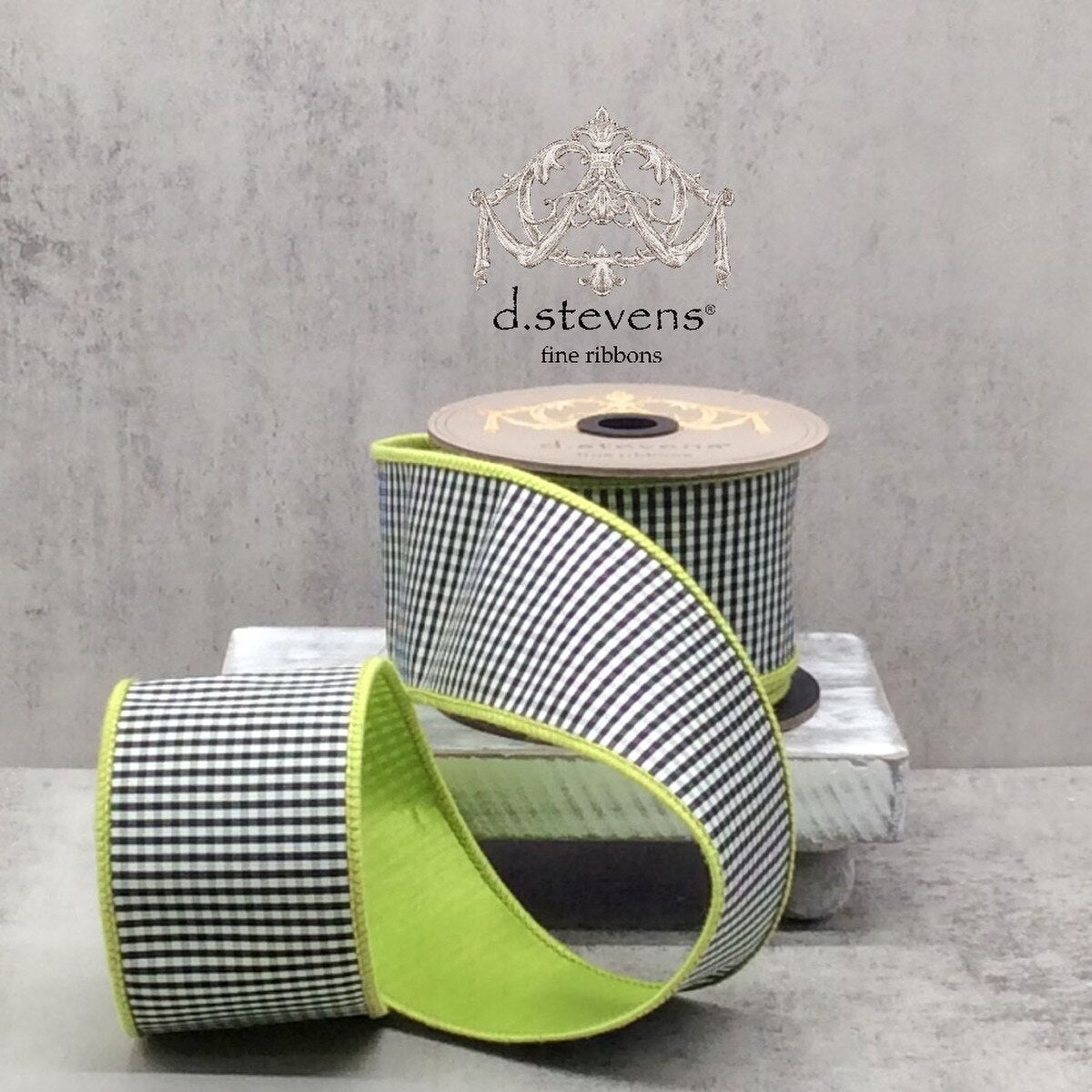 2.5" x 10yds faux dupion mini check lime back, black-white Ribbon