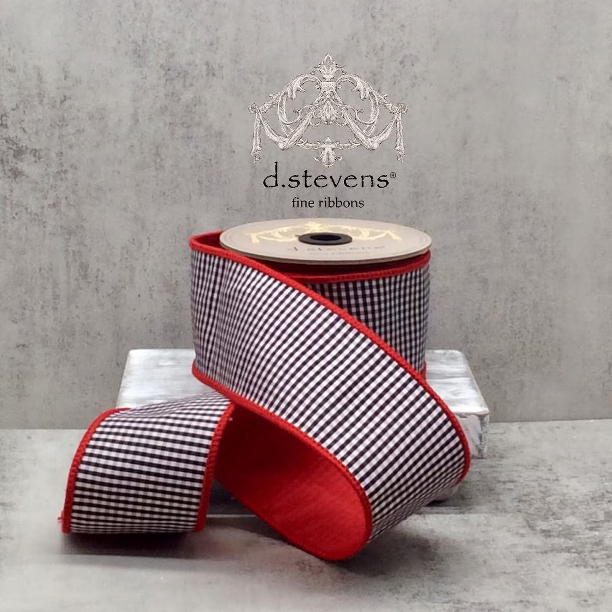 2.5" x 10yds faux dupion mini check red back, black-white Ribbon