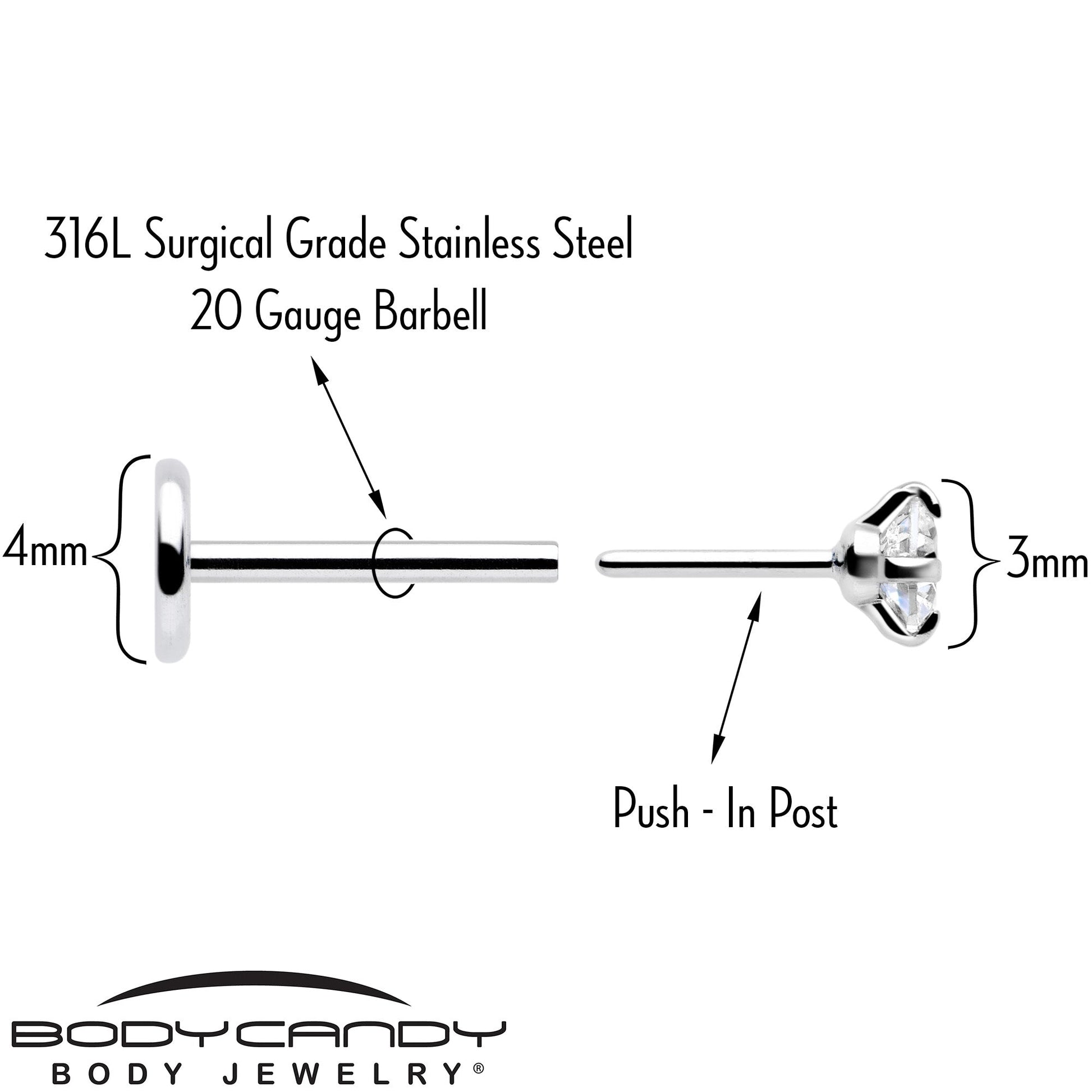 2.5mm Gem Flat Back Earring Threadless Push In Stud 20 Gauge