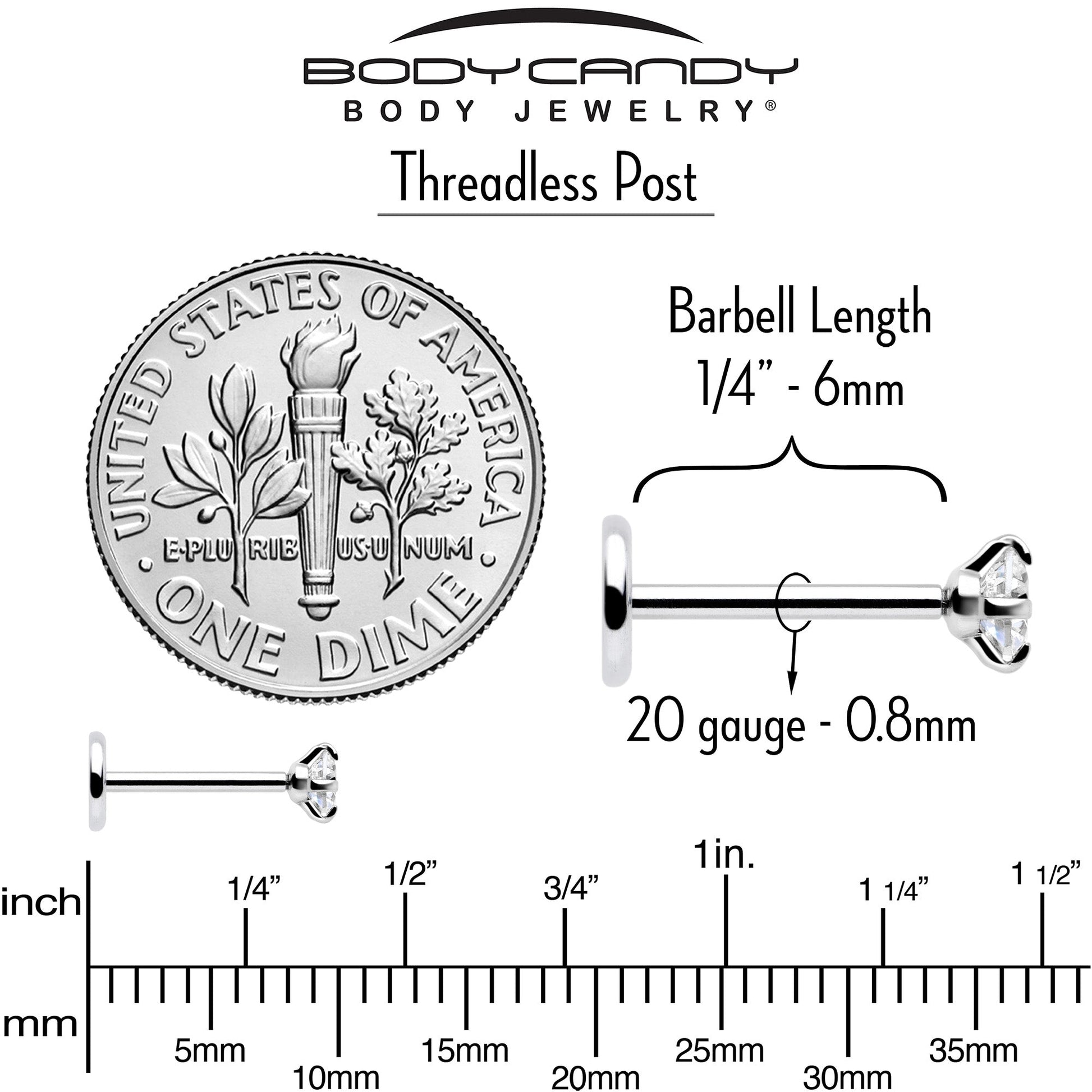 20 Gauge (.8mm), 0.27" (7mm), 316L Surgical Grade Stainless Steel Straight Post, Threadless Push In Design, 2.5mm Gem End