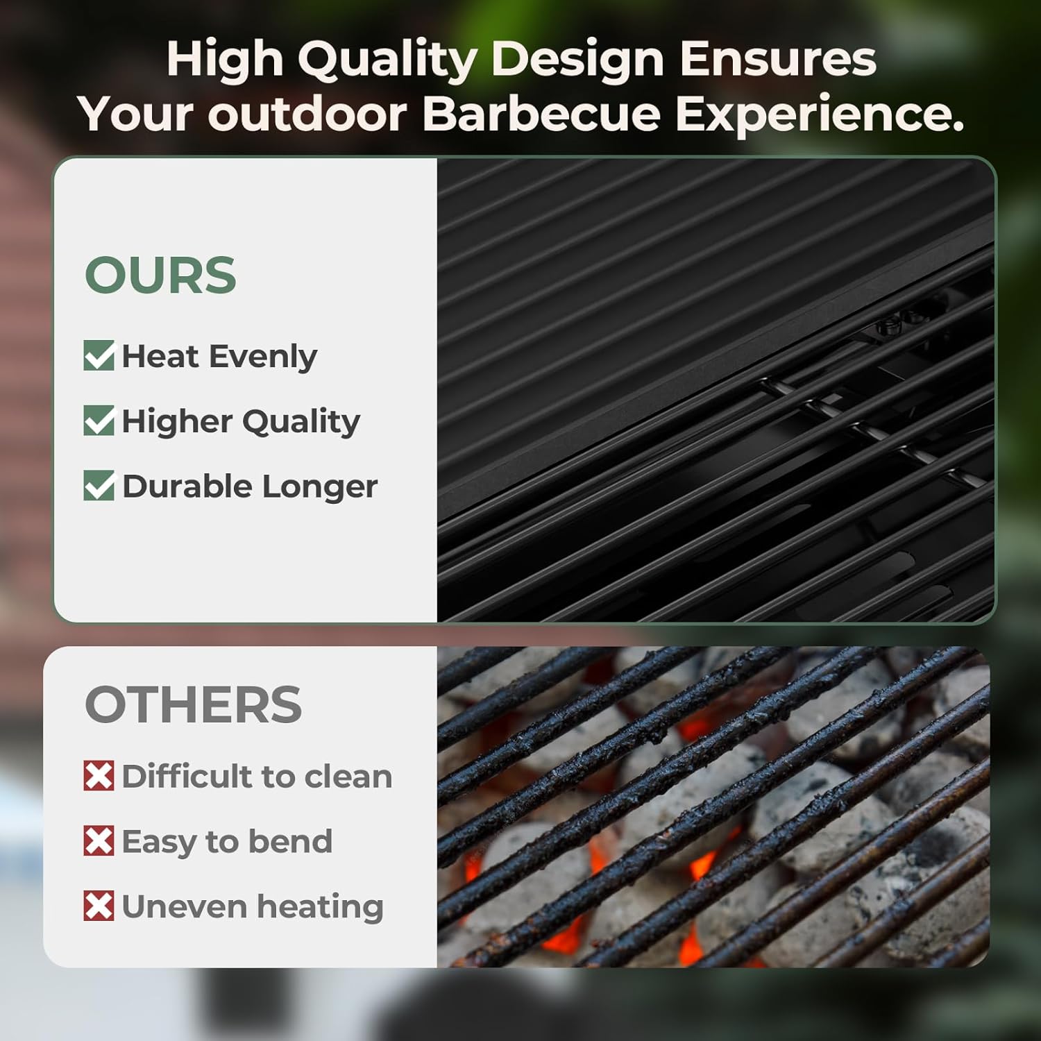Premium Alloy Build: Crafted with corrosion-resistant stainless steel and alloy components, this grill ensures durability and food-grade safety. Lightweight yet robust, it offers efficient heat conduction for quick preheating and even cooking