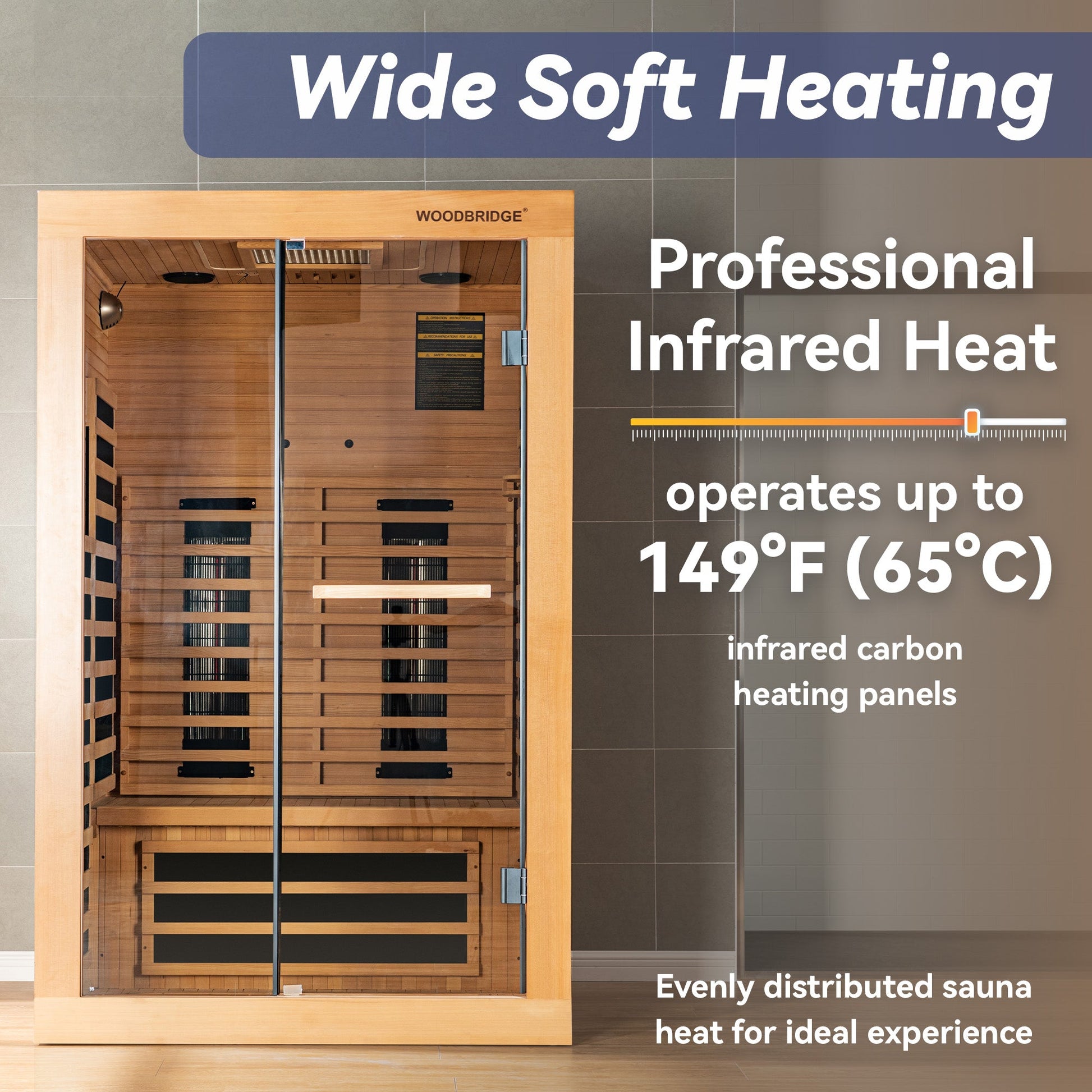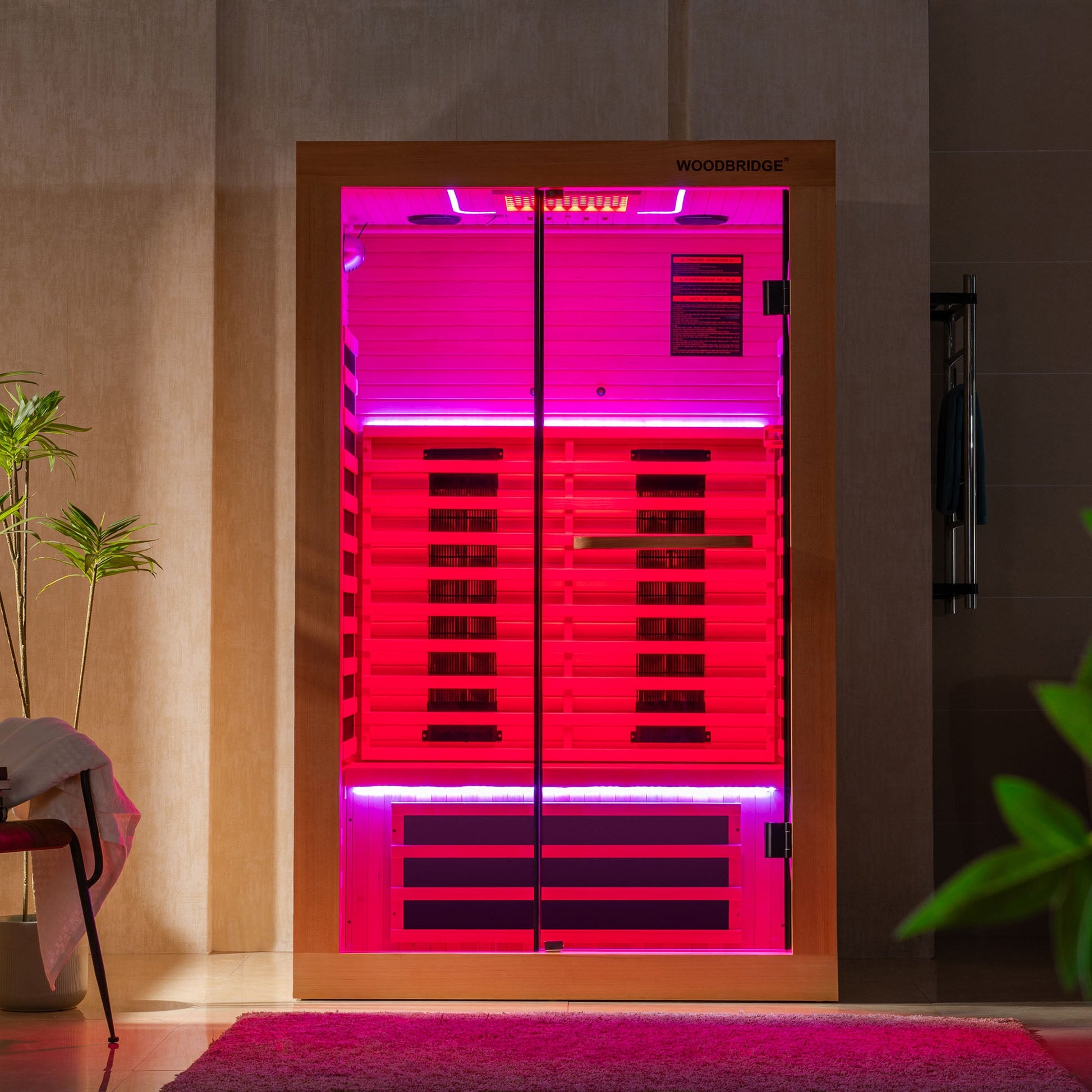 2 Person Canadian Hemlock Wood Infrared Sauna For Home With Touch-Tone Keypad, Led Color Therapy Light, Tempered Glass Door And A Top Vent