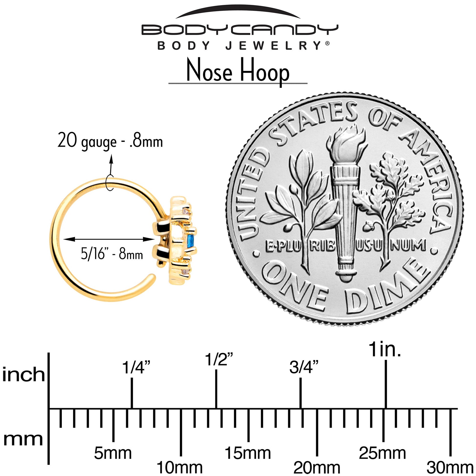 20 Gauge 5/16 Blue CZ Gem Gold Tone Flower Ring Nose Hoop