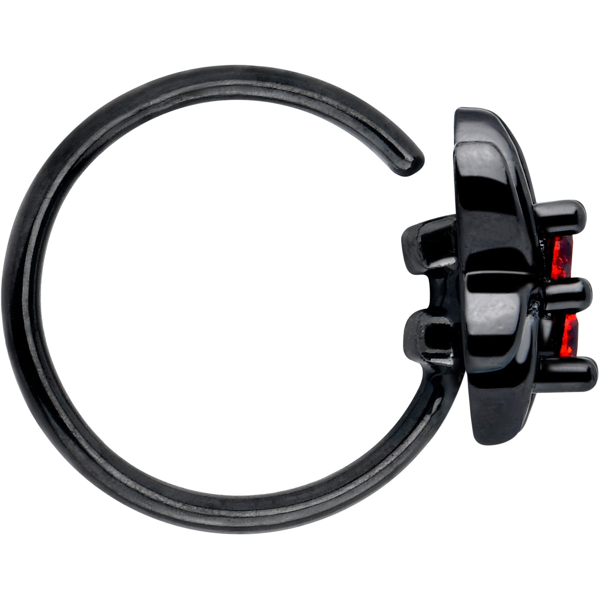 20G 5/16 Red CZ Gem Black Sleek Spider Nose Hoop